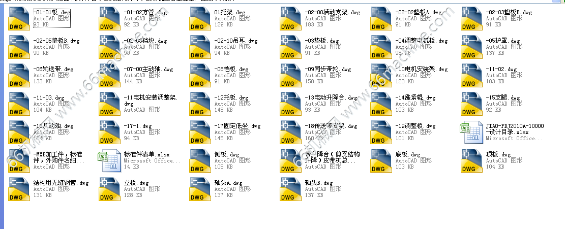 【某某机电设备公司图纸,CAD2007版本,可做参照,使用时可自行编辑,仅供参考!】本图纸为带升降台(剪叉结构升降)皮带机全套生产图纸,图纸包含总图及其全套零件图,图纸标注清晰、完整,都配有技术要求等说明,为专业人员设计,水平很高,可供大家探讨学习!(设计图纸,可做参照,使用时可自行编辑,仅供参考!)