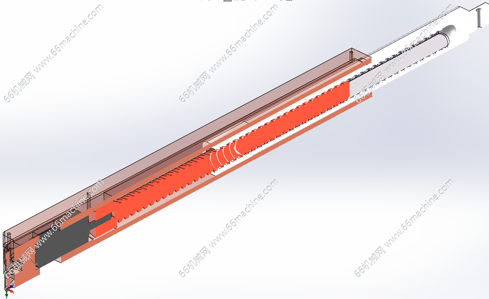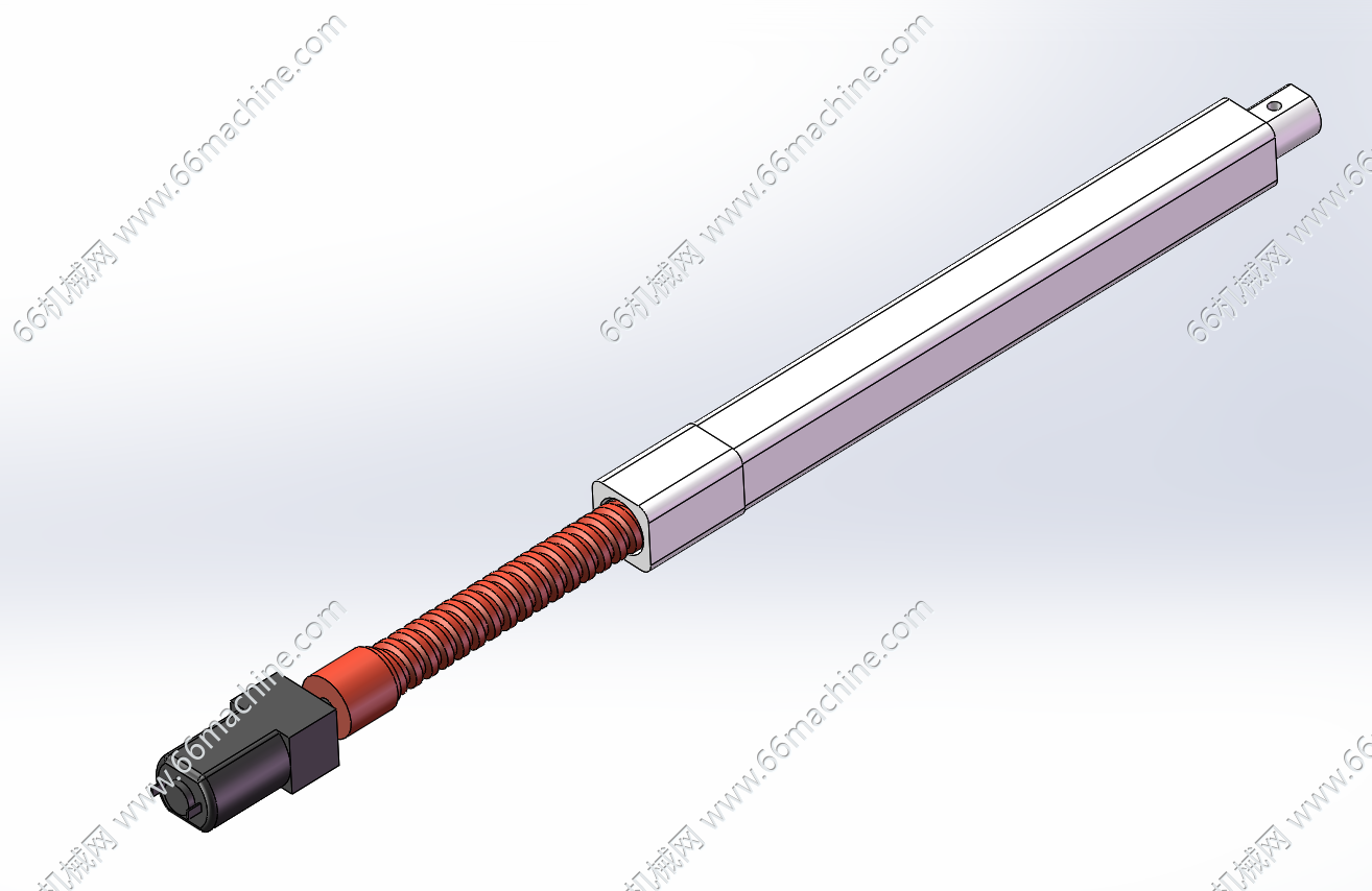 本模型为电动推杆(又称电缸),电机通过联轴器与内部丝杆连接,将电机的旋转动力传递给丝杆,是将旋转运动转化为直线往复运动的自动化执行机构,广泛应用于工业自动化、智能家居、医疗设备等场景。
