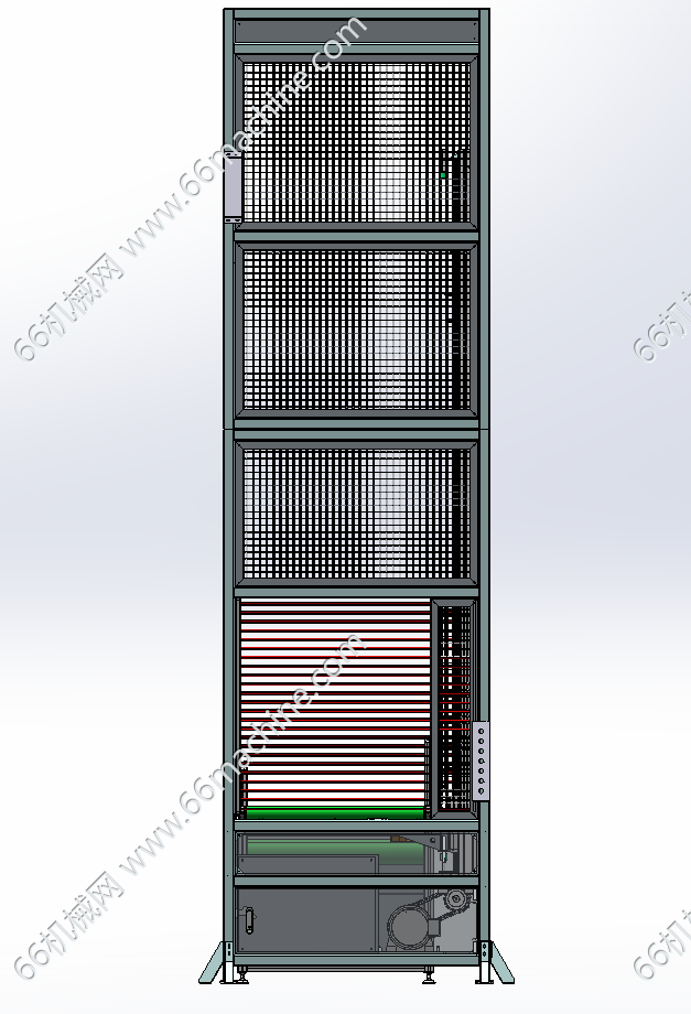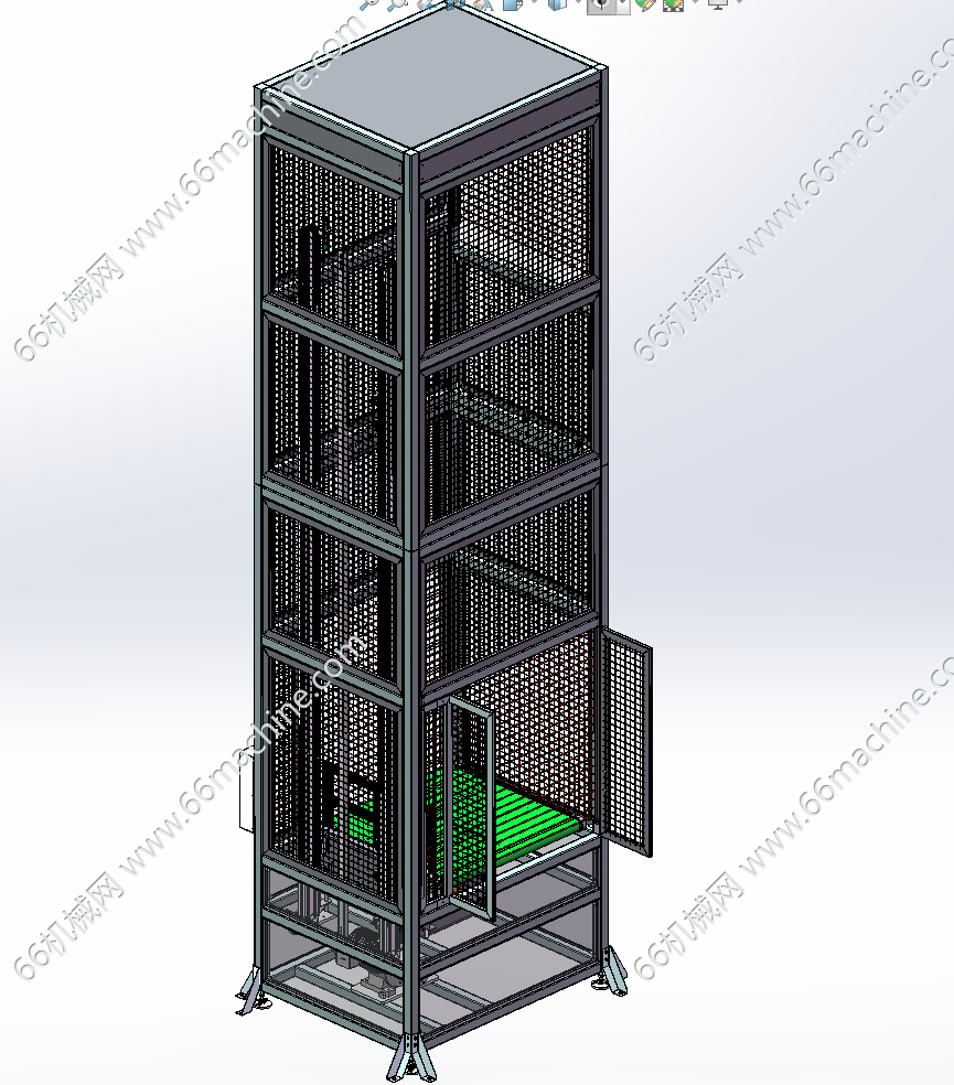 本模型为连续式垂直提升机(升降机、货梯),可实现物料的连续水平输送与跨高度/楼层垂直转运,具备效率高、占地小、适配性强的特点,广泛应用于食品、医药、电子及电商物流等行业的产线与仓储场景。
