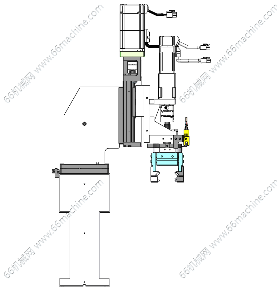 本模型为旋转升降夹持机构,采用了KK模组进行升降,旋转机构采用伺服电机和联轴器方式进行旋转,产品夹取方式采用夹爪气缸形式,采用伺服旋转方式保证了产品旋转精度及平稳性。