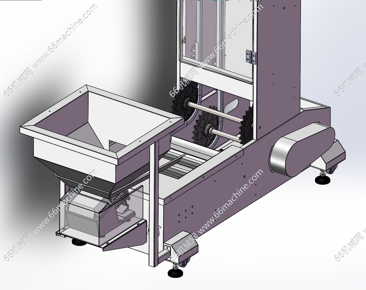 斗式提升机是一款能竖向、不间断提升物料的设备。内部由链条上密集排列的料斗作为容器,从低处装载物料输送至高处。可搭配包装机使用。本模型建模精巧,可供大家参考!