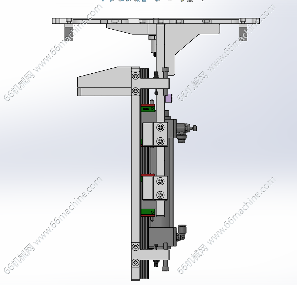 本模型为气动顶升机构(升降台),采用气缸+导轨结构实现负载垂直升降功能的机械装置,主要特点是结构紧凑、导向精度高、运行平稳、维护方便,欢迎参考!