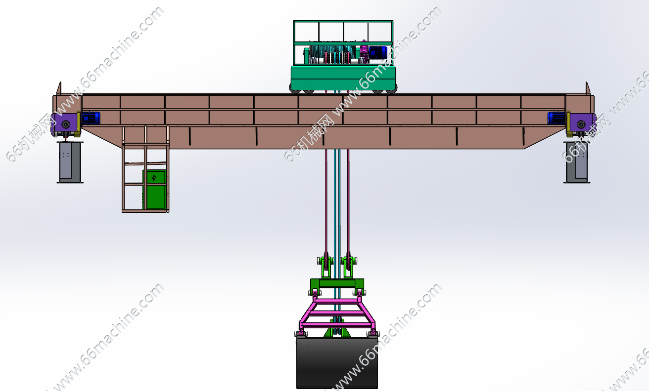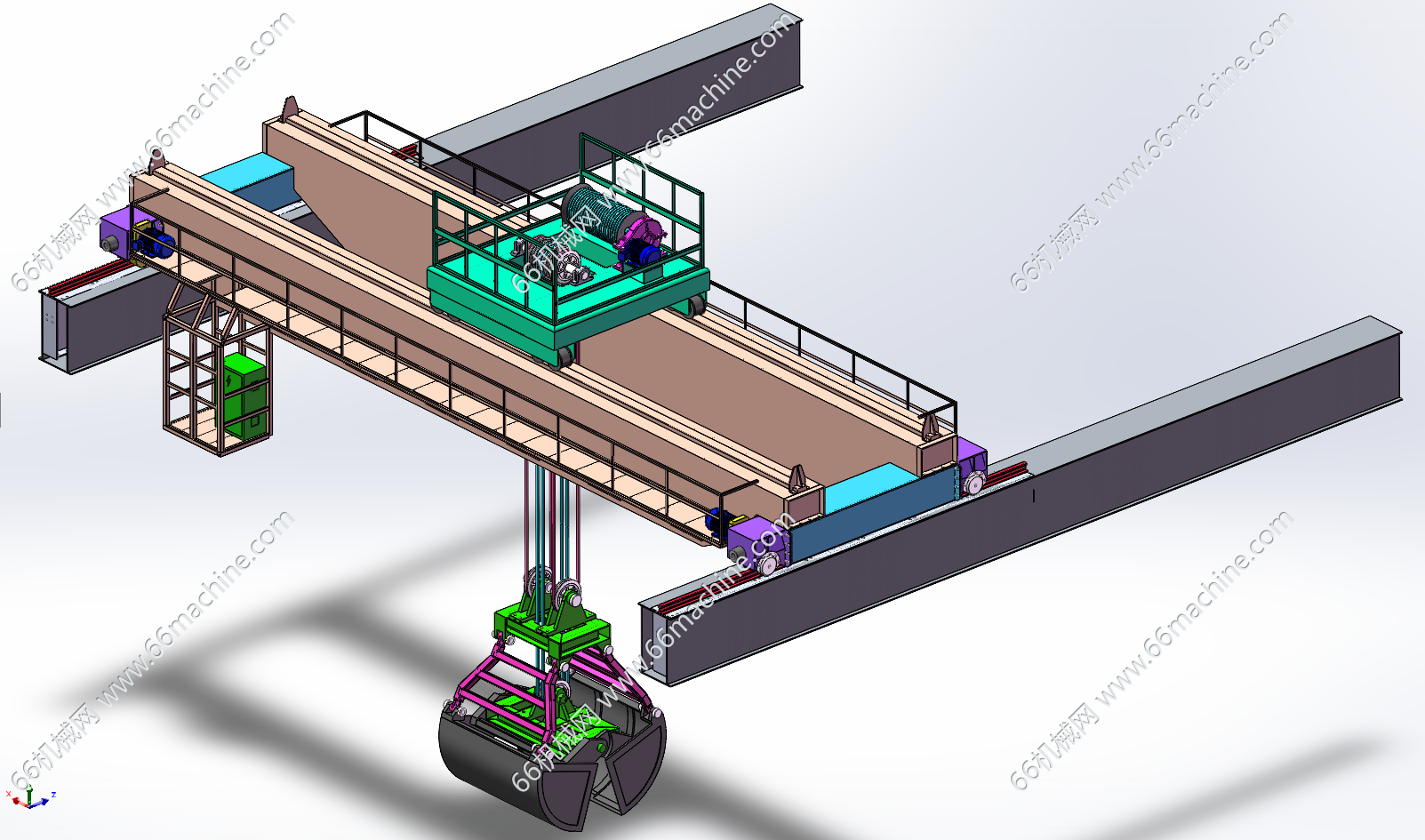 抓斗桥式垃圾搬运起重机(双梁抓斗起重机)3D+CAD