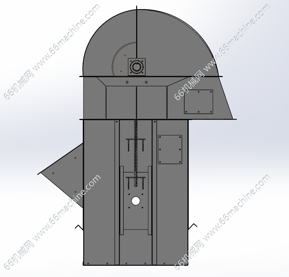 本模型为斗式提升机,利用均匀固接于无端牵引构件上的一系列料斗,竖向提升物料的连续输送机械。广泛应用于建筑材料、化学工业、食品工业、粮食仓库、耐火材料、冶金和煤炭工业等部门,用于提升粉状、粒状、小块状的无磨琢性和磨琢性物料,如水泥、煤、砂、谷物、矿石等。
