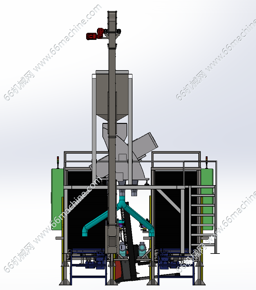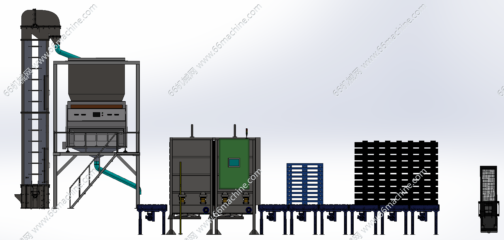 本模型为种子筛选、去杂设备,左侧有提升装置,能将种子提升至高处送入后续处理环节;可对种子进行筛选,去除杂质、瘪粒;还有暂存仓位,可存放处理后的合格种子;右侧的叉车则方便搬运种子容器,助力种子从处理到存储、运输等流程高效开展。