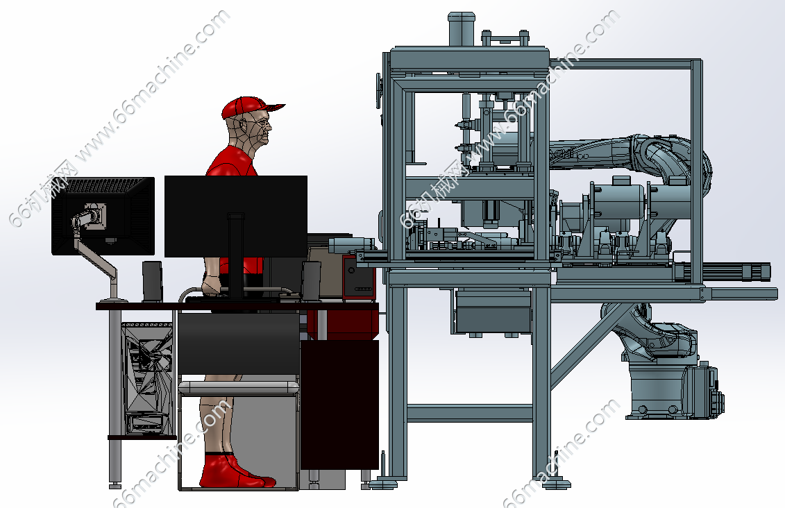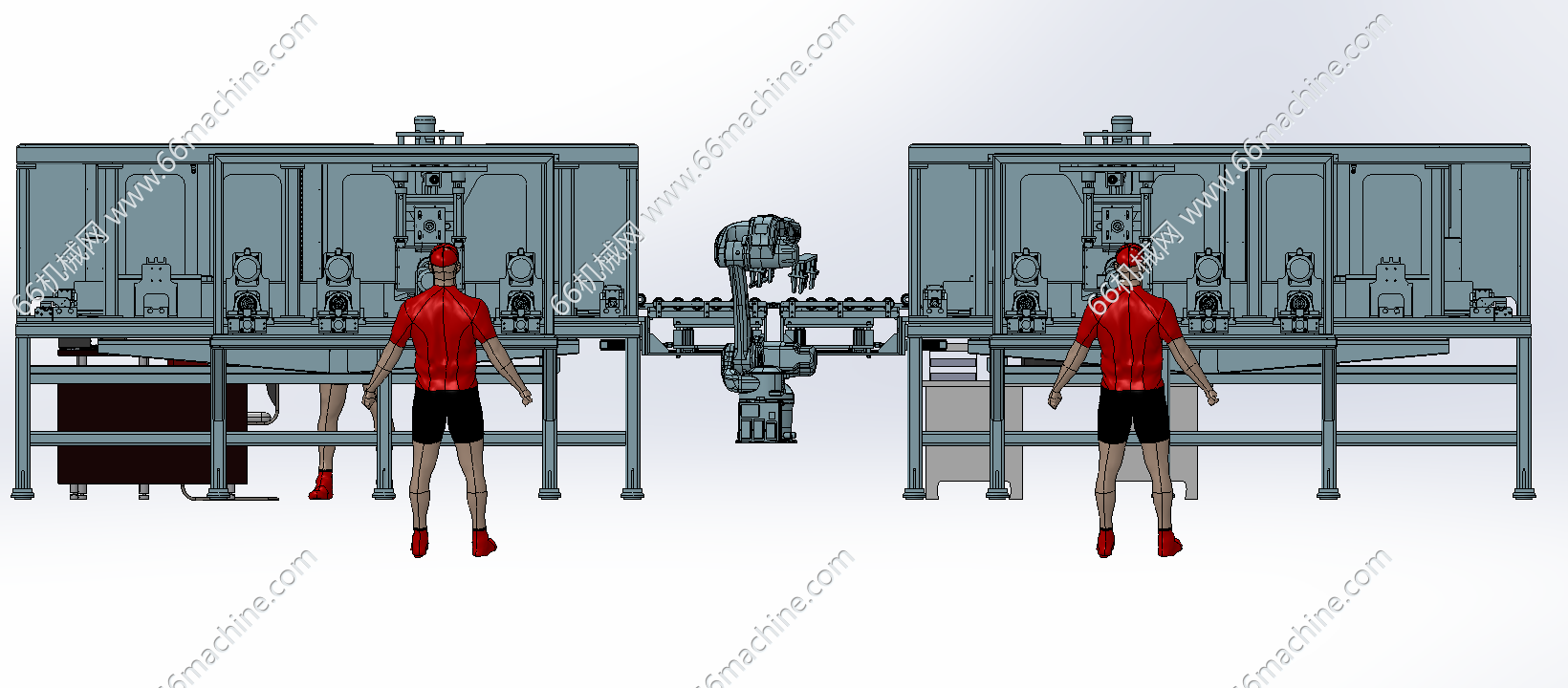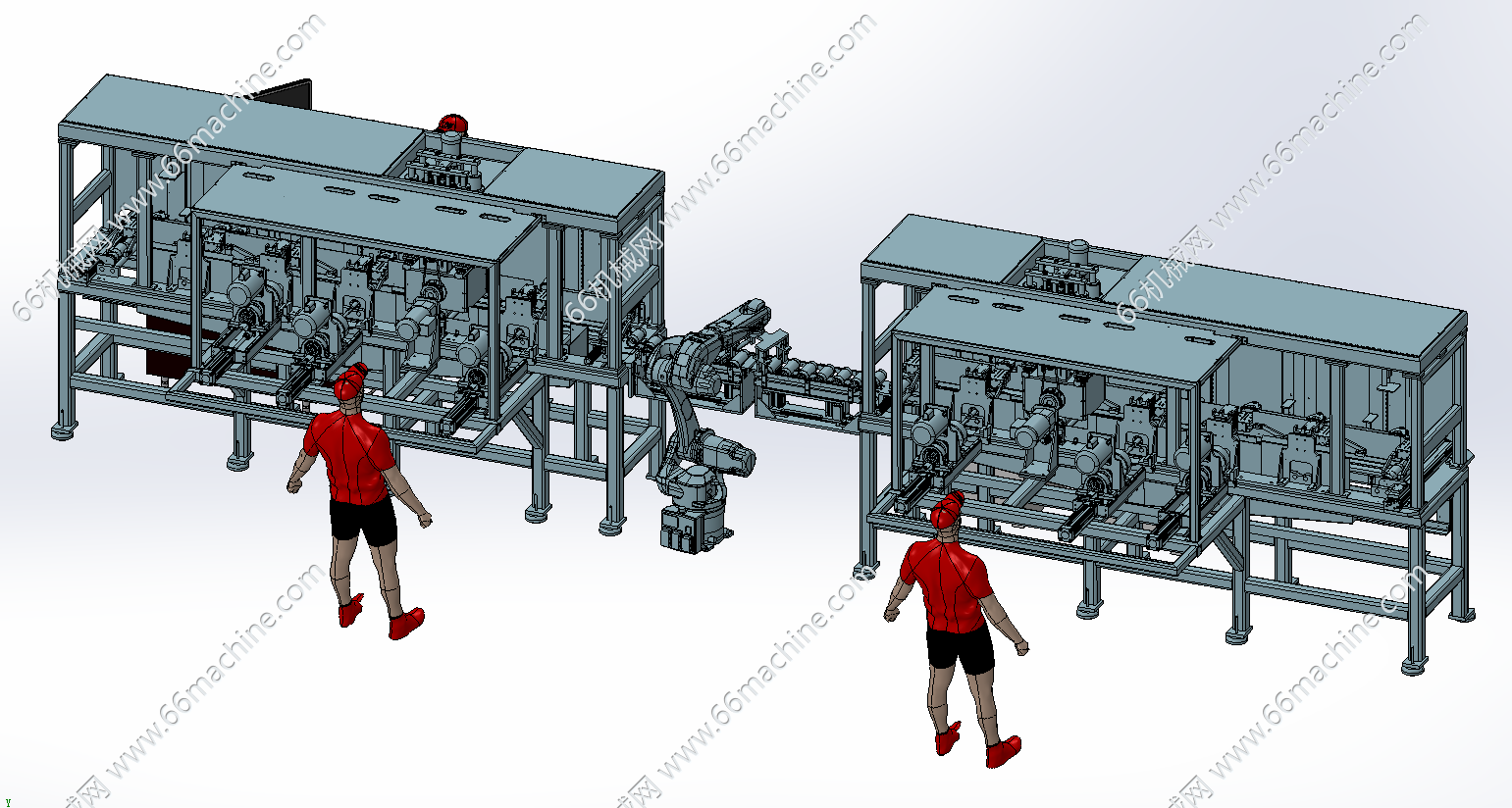 本模型为产品加工生产线,工作人员在操作工位监控检测流程、处理异常情况,输送线负责产品在各检测工位间的流转,实现产品从生产到检测的自动化流程。