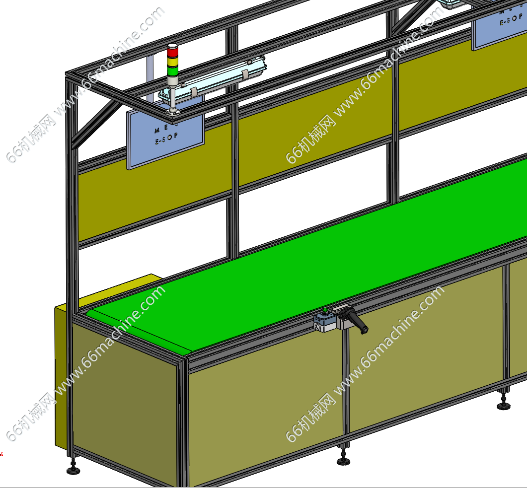 本模型为电子厂常用生产皮带线,搭配交流电机驱动,可调皮带线速率。适用于要求整合设备或自动化车间输送线体配合使用,同时皮带线上层可用人工作业区域,适用部分手动作业。