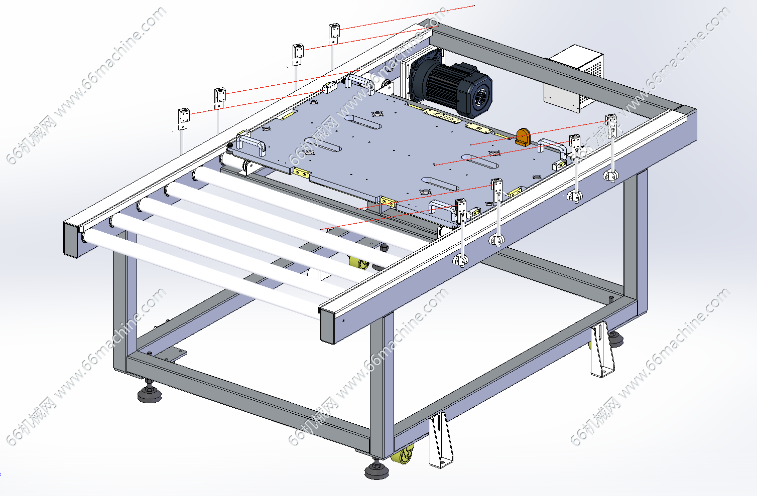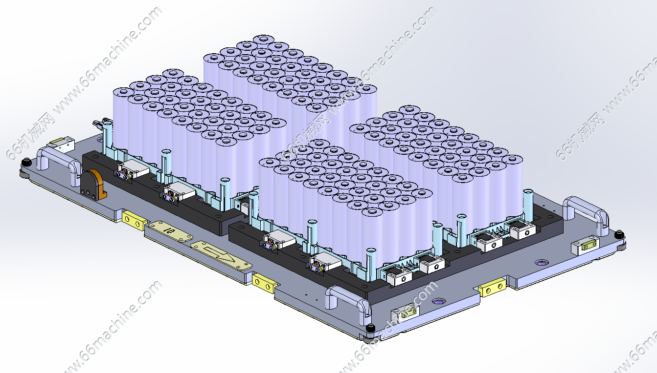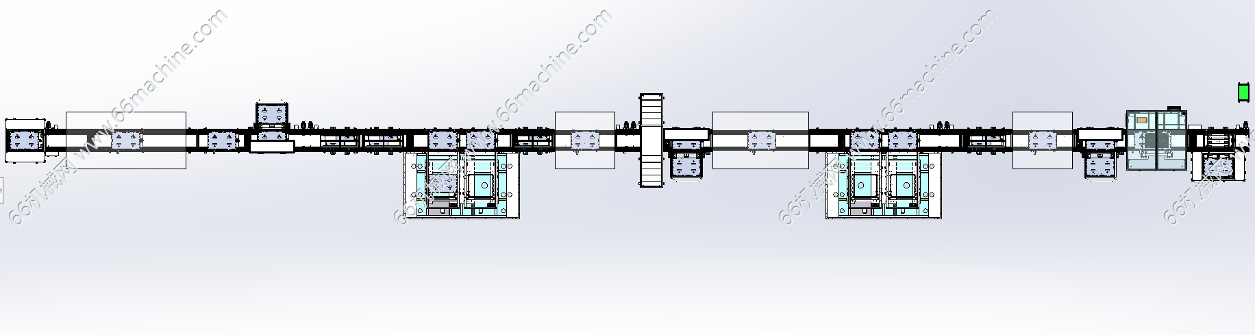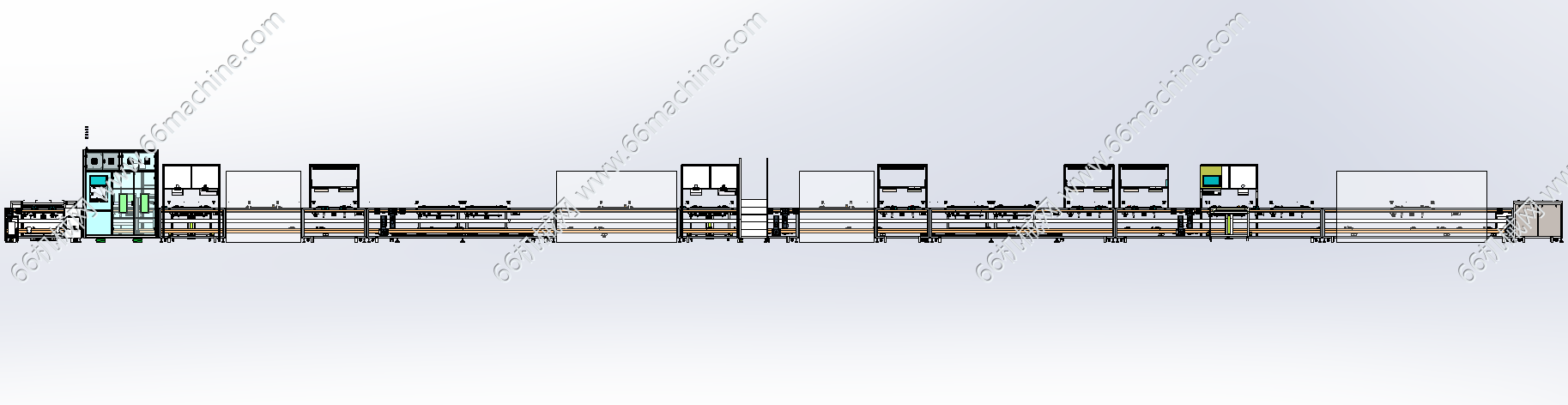 本模型为圆柱电池模组倍速链生产线,设备包括倍速链传动、治具上料机构,治具下料机构、治具阻挡结构、顶升机构等。设备使其上承托货物的工装板快速运行,通过阻挡器停止于相应的操作位置或通过相应指令来完成积放动作及移行、转位、专线等功能。本设备主要用于圆柱电池模组组装及测试作业,仅供大家参考!