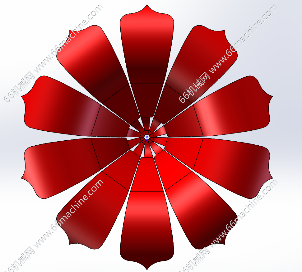 本模型为10瓣钣金花朵,有点像喇叭花,是我们小时候田园生活常见的一种花,其花非常美丽动人,勾起了一代又一代人年少美好的田园风光,机械花是展现机械的魅力。