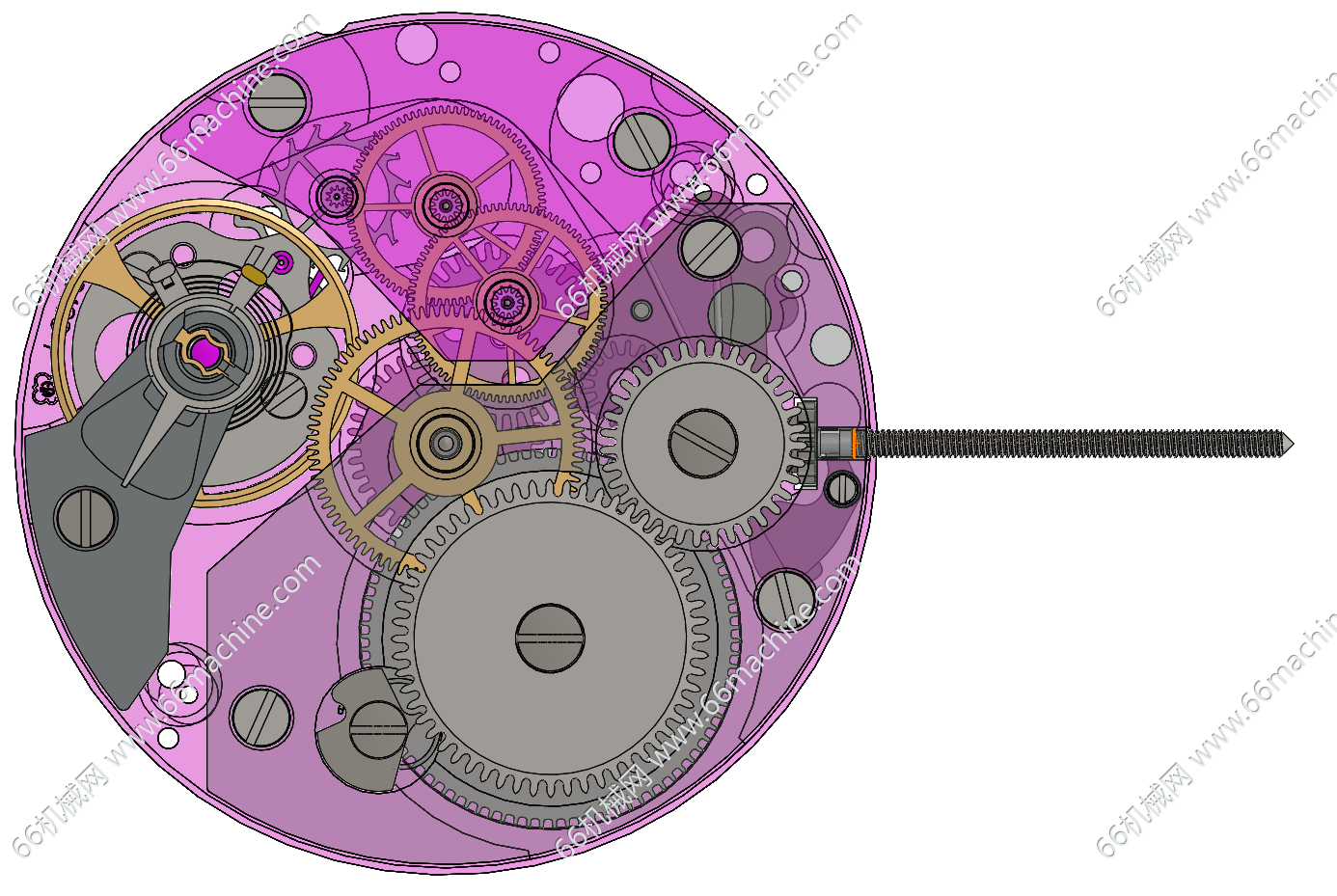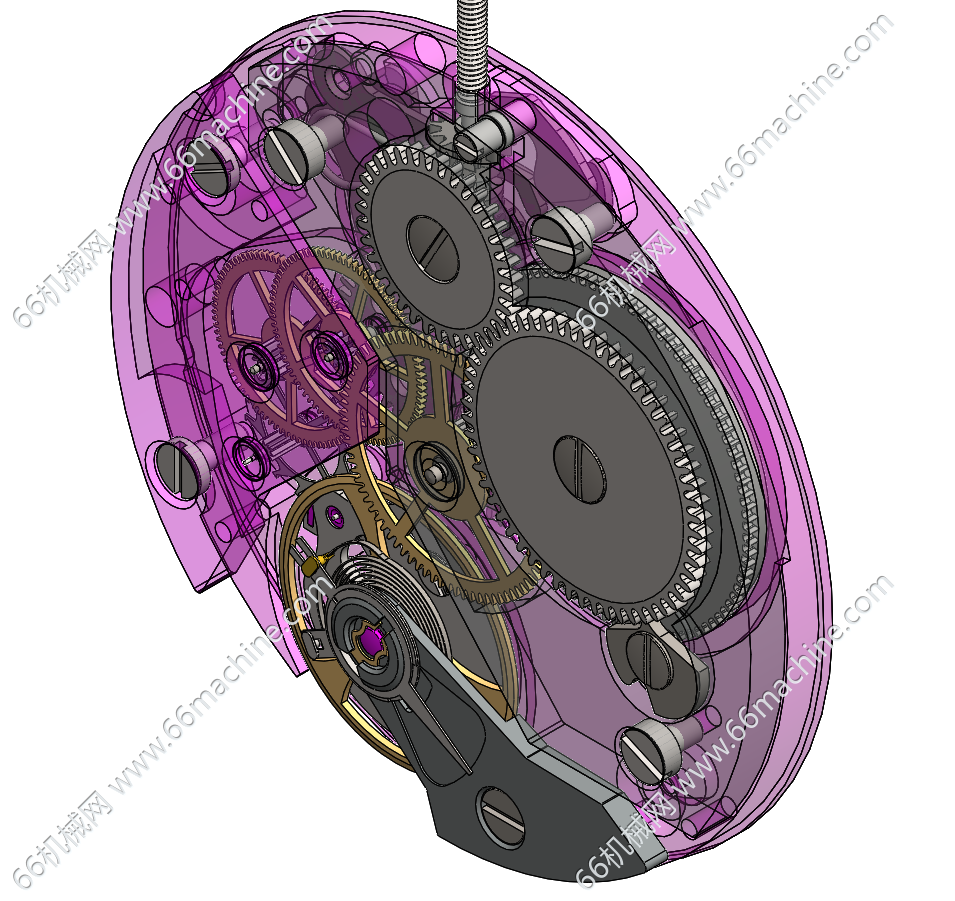 本模型为机械表机芯,机械表是指通过内部机芯的发条为动力,带动齿轮运转并推动指针走时的手表。机械表不需要电力发电,因此无需更换电池,但需要定期清洁养护就行,使用年限较长。