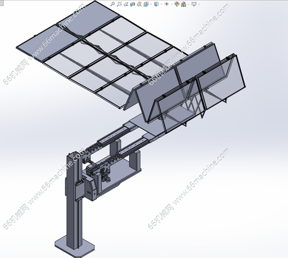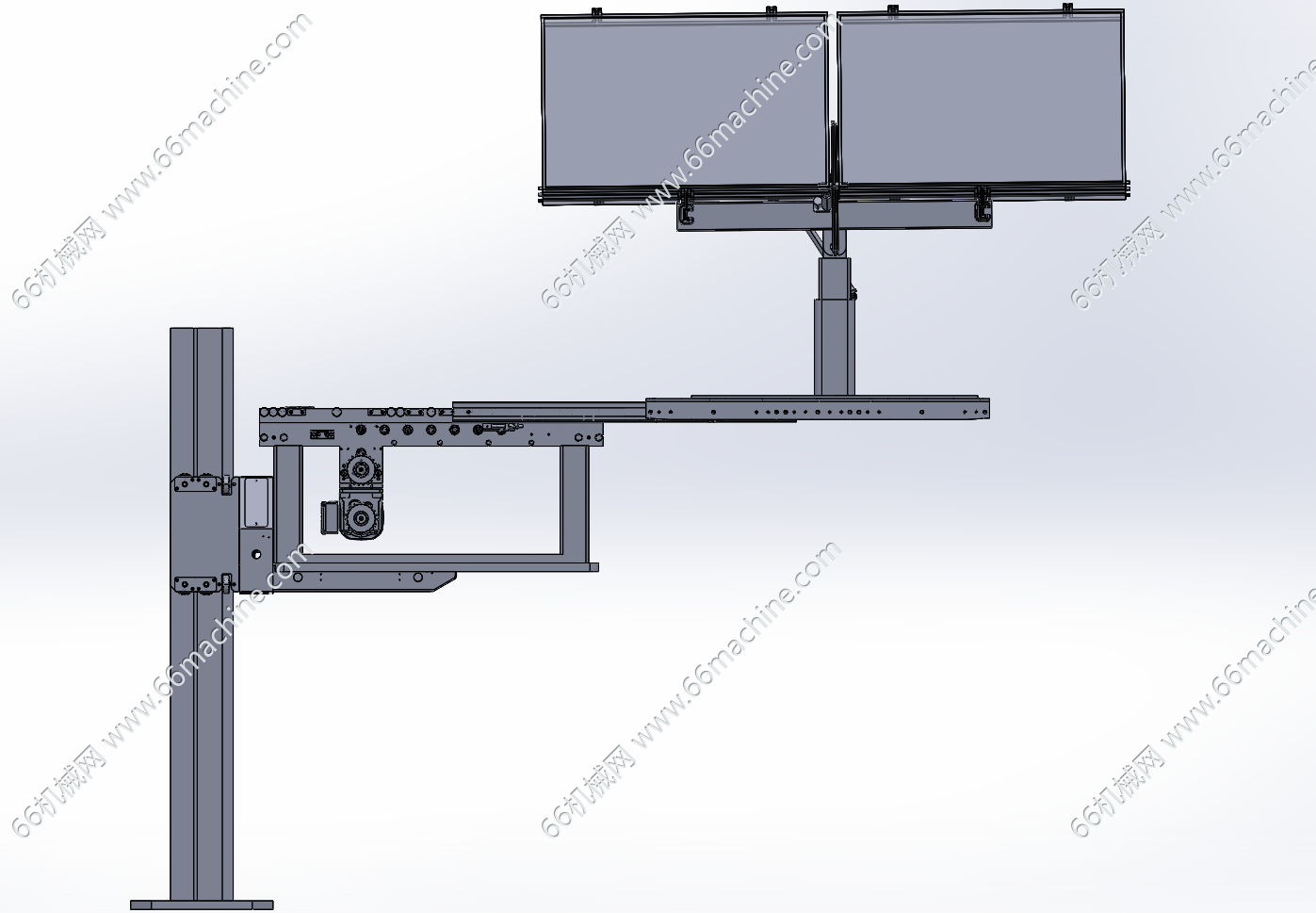 本模型为可升降伸缩式遮阳棚(遮阳罩),采用升降组件、多级伸缩组件及折叠遮挡组件联动设计,实现垂直升降、水平双向延伸、角度与幅度折叠的三维空间调节。适用于车辆遮阳或应用在高要求养殖业。
