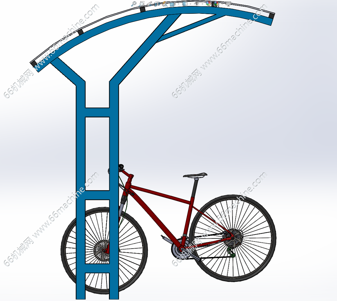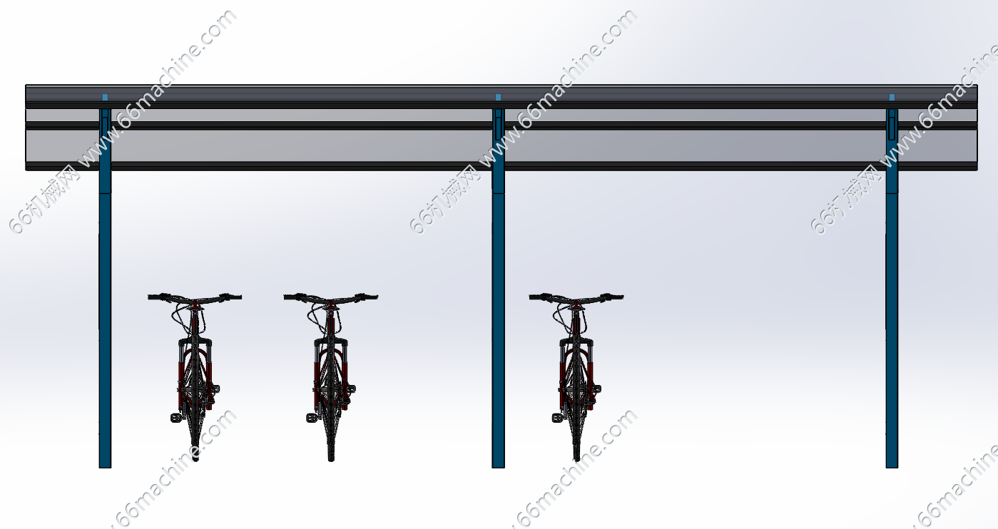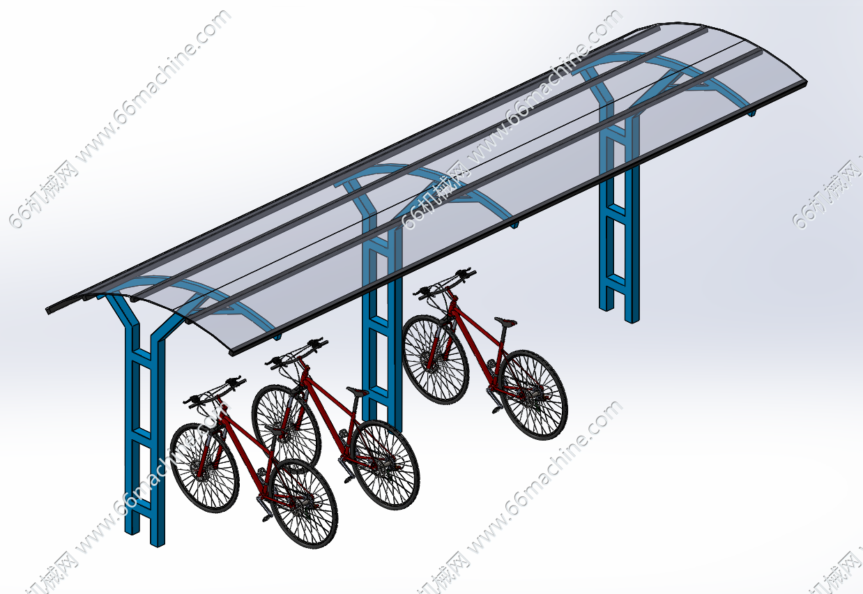 本模型为常规自行车、电动车、摩托车停车棚,可安装在工厂门口,小区,学校等场所,由钢结构主体焊接,搭配顶部雨棚,钢结构设计符合工程力学,欢迎参考!