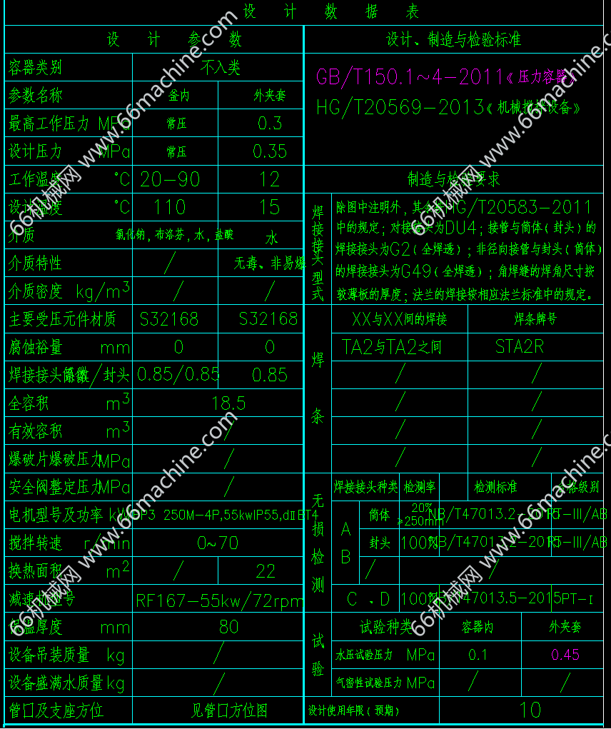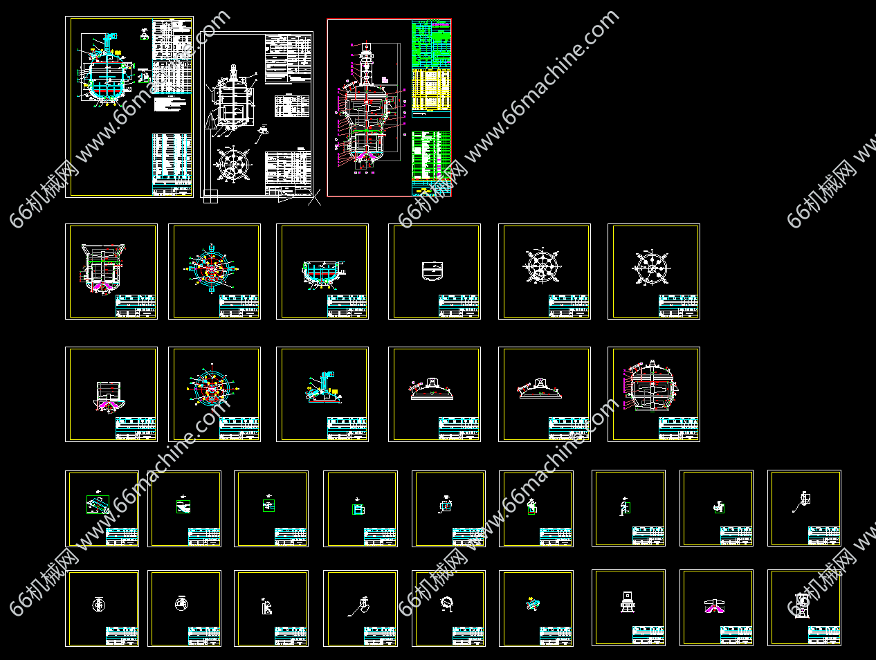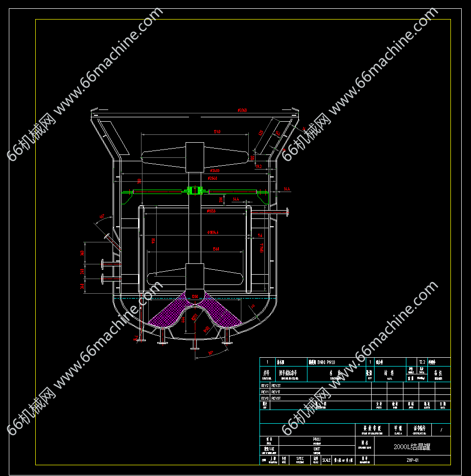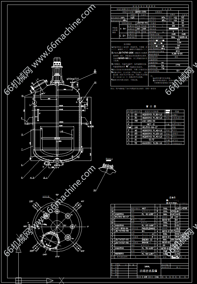 本套图纸为三款结晶罐(反应结晶器),包含2000L、3000L及18500L三款及其零件图,结晶罐是物料混合反应后,夹层内需冷冻水或冷媒水急剧降温的结晶设备,其关键环节在于夹层面积的大小,搅拌器的结构形式和物料出口形式,罐体内高精度抛光,以及罐体内清洗无死角的要求来满足工艺使用条件。仅供大家参考!
