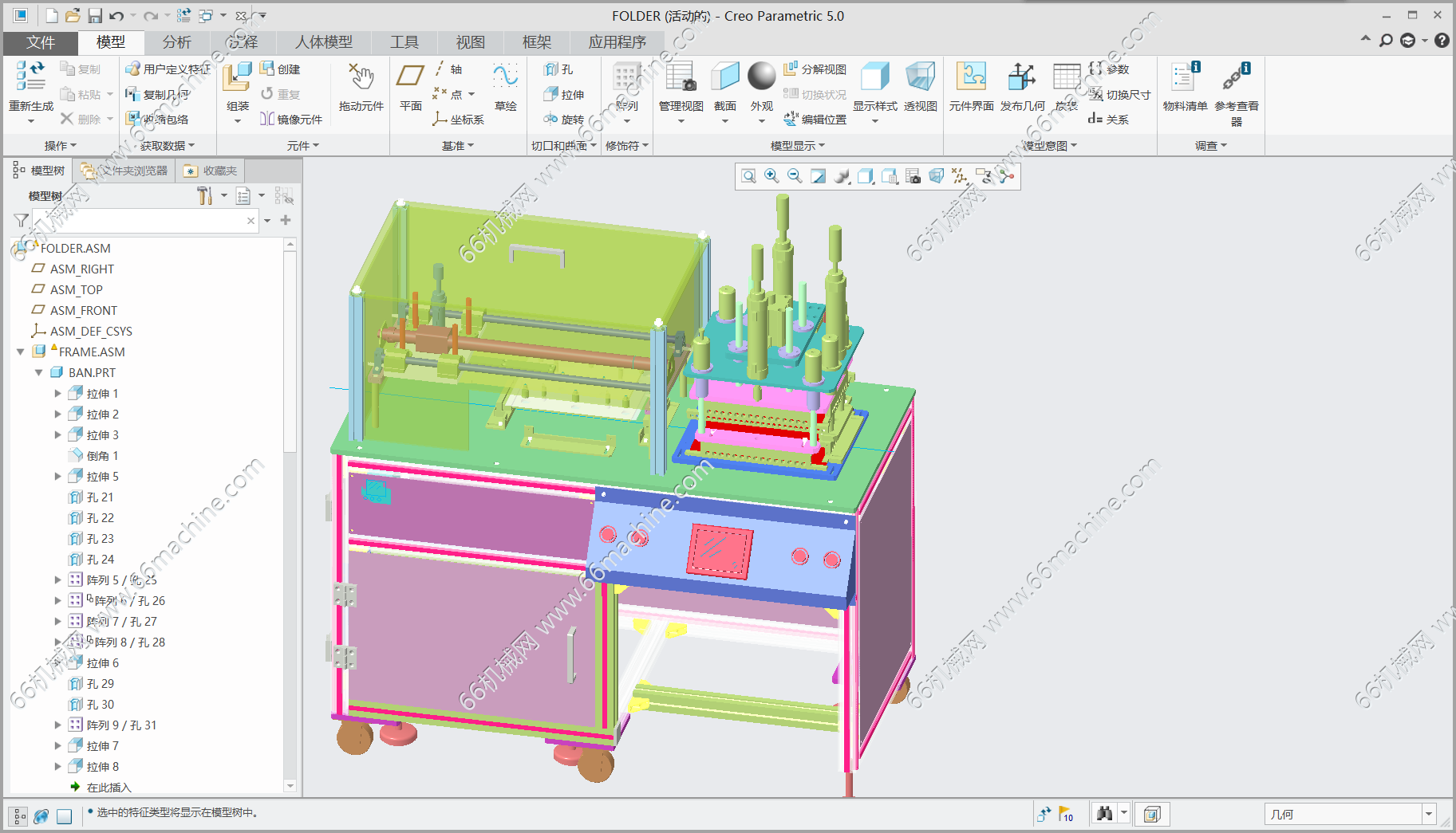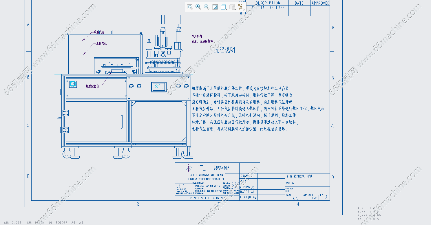 本塑胶档案夹热压成型设备采用ProE5.0全参数建模,集成加热、加压、成型、脱模等结构,适用于塑胶档案夹自动化热压成型,成型稳定、外观平整、效率高。整机模型完整可编辑,含详细装配体,支持运动仿真、干涉检查与工程图导出,可直接用于产品生产与设备改进。