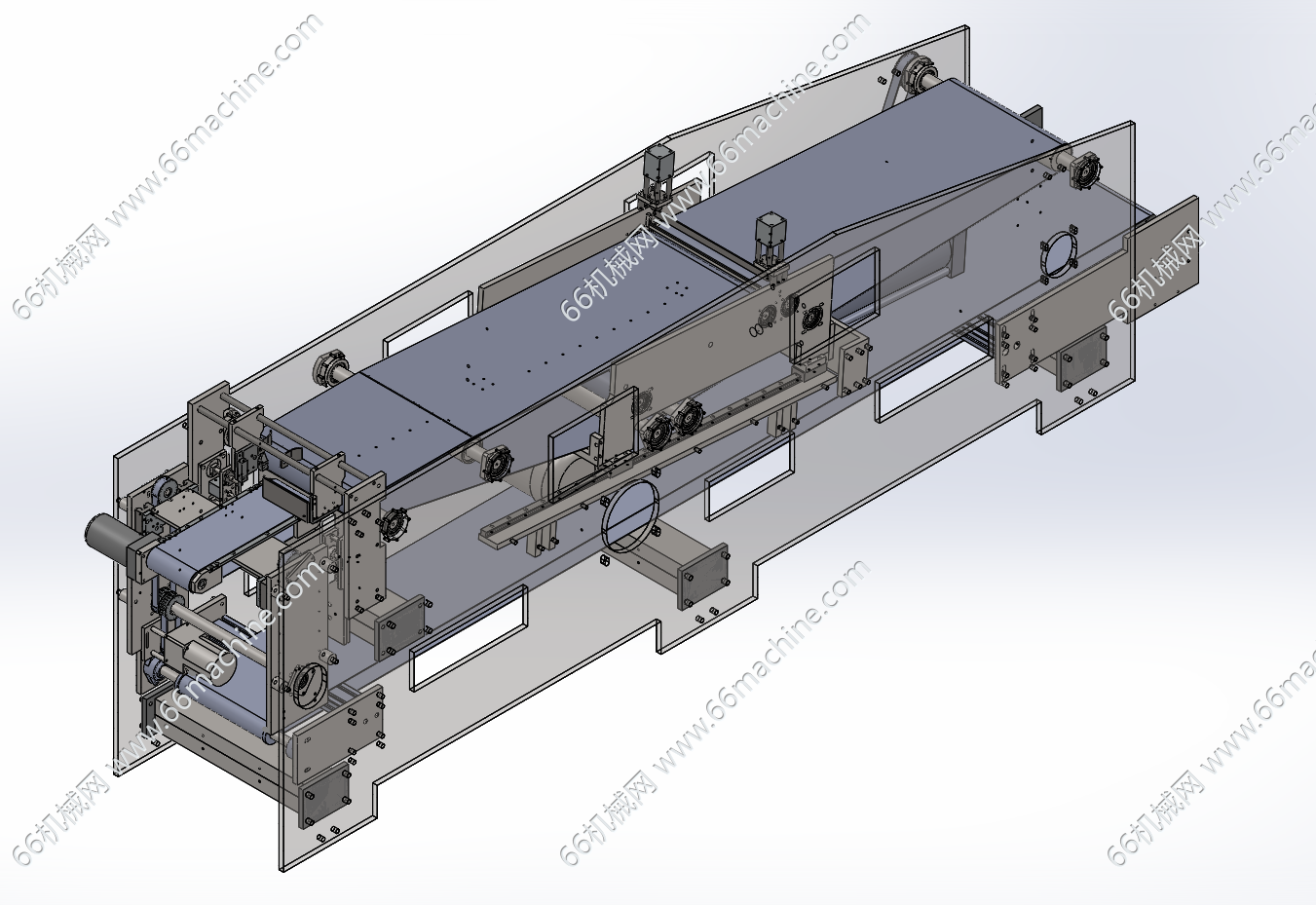本模型为某企业可伸缩双层收纸皮带线,主要应用于印刷模切后单张纸进行收集整理,皮带具有伸缩功能,实现印刷后道的码垛整形。可实现纸张(或类似片状材料)连续、有序、精准输送。