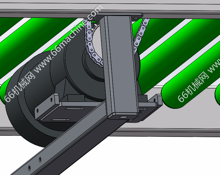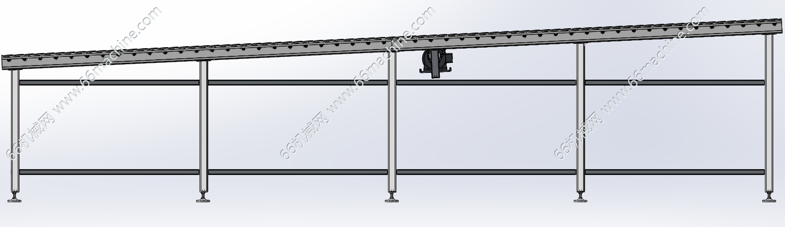 本模型为倾斜式提升滚筒输送机,采用包胶滚筒输送结构,可实现箱装、托盘类物料的平稳连续输送,适配性强、拓展性高,广泛应用于自动化产线与仓储物流场景。