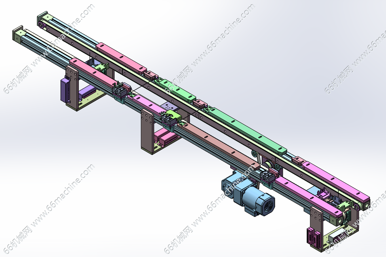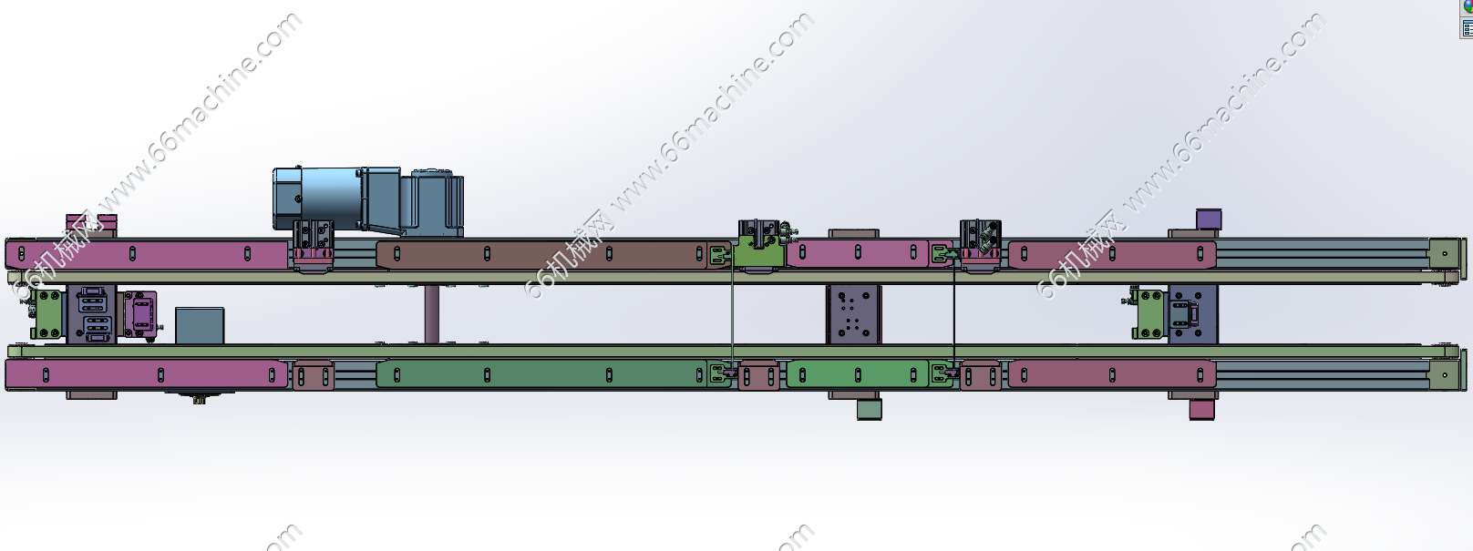 本模型为双列皮带线,可随时拆解成两条独立皮带线,可实现正反转,该皮带线由两台400W调速电机带动,设计简单紧凑,成本低廉的同时兼顾使用可靠,是工厂流水线的常用产品。