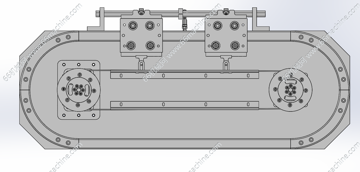 本模型为环形导轨输送机构,采用椭圆闭合轨道,由两段直线导轨与两段圆弧导轨精密拼接而成,保证滑座平稳过渡。摆臂式定位机构可在指定工位对滑座进行精准锁止。