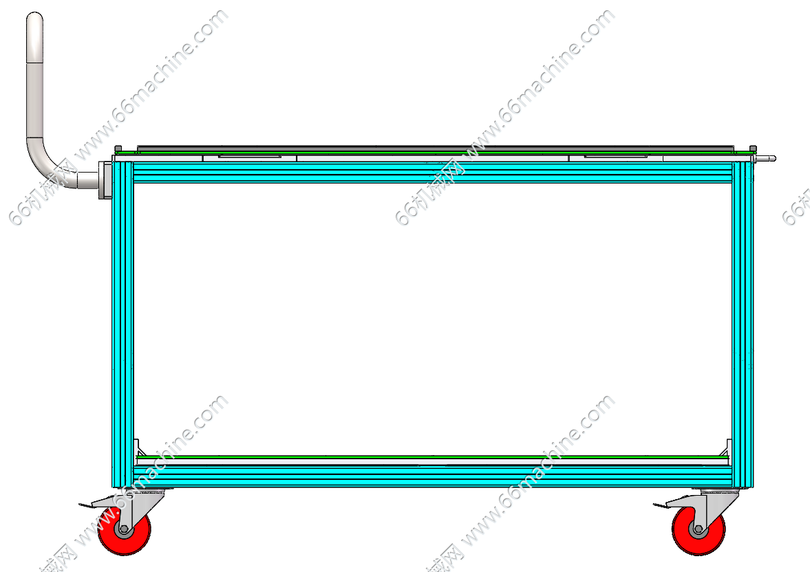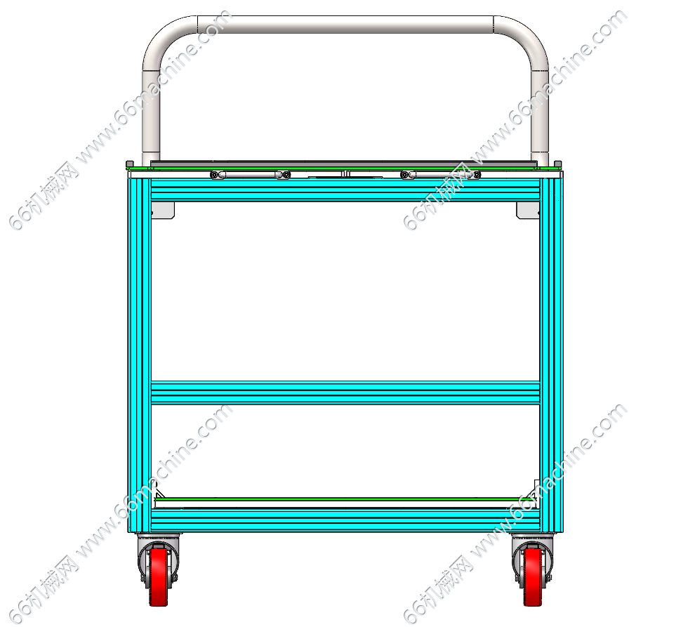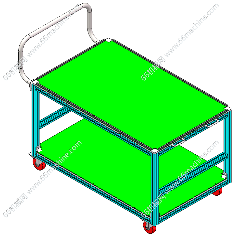 本模型为双层周转小推车,采用不锈钢钣金制作,方便车间内物料周转,使用方便,结构牢固,美观。脚轮为静音型,运转时无噪音,可节省人力。可用水冲洗,实际生产时可根据车间情况进行外观尺寸更改,从而适合实际生产需要。