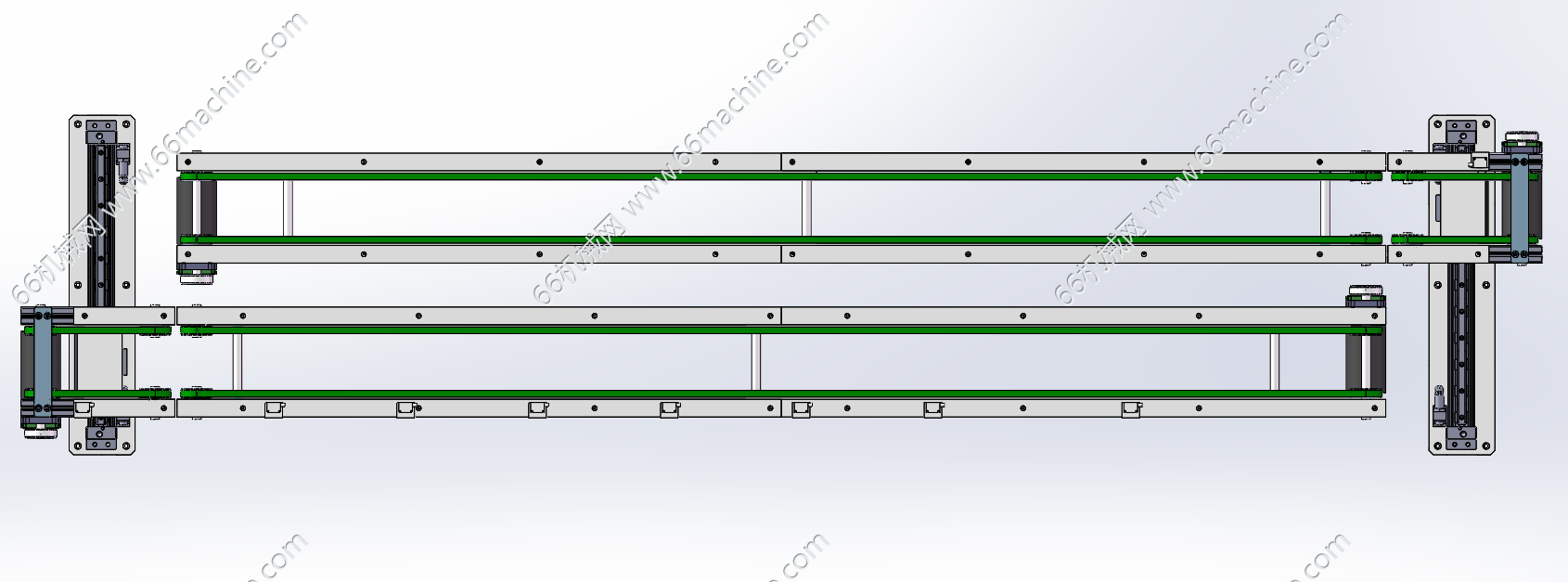 本模型为托盘双列循环输送线,由2条双列长行程皮带线+2条横移接驳皮带线组成,支持独立调速与工装托盘循环流转,具备结构紧凑、适配性强的特点,广泛应用于电子、制造等行业的自动化产线,实现托盘的高效输送与工位流转。
