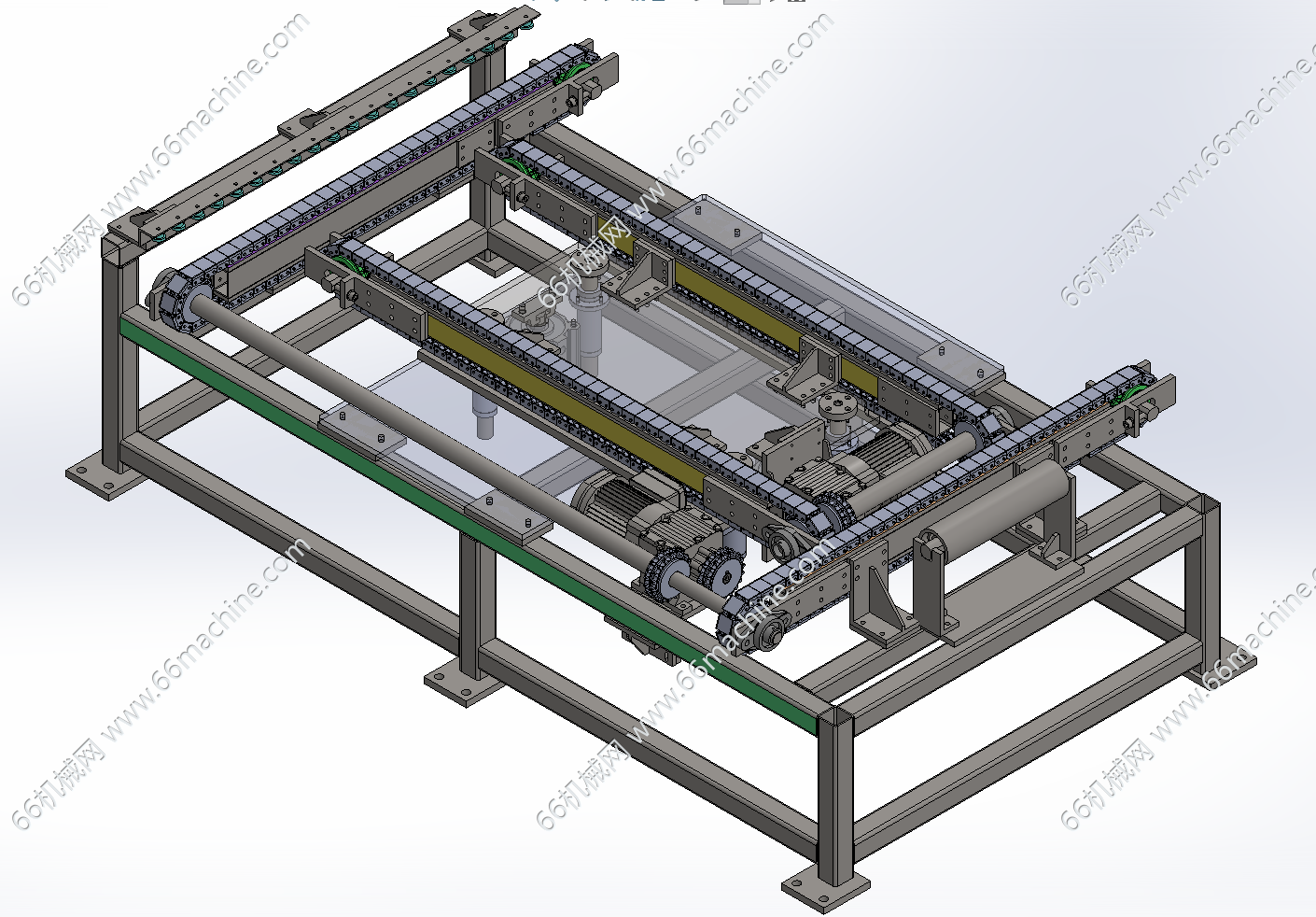 本模型为十字顶升转向移载机(输送机),是一种高效的自动化转向与转运设备。其核心功能是:在不停顿整体物料流的前提下,将运行中的货物从一条输送线精确转移至与之垂直或呈特定角度的另一条输送线上。它是实现物料分流、合流、转向、排序及并入不同工艺流程的关键设备,在现代智能物流与自动化生产线中扮演着“交通枢纽”的角色。