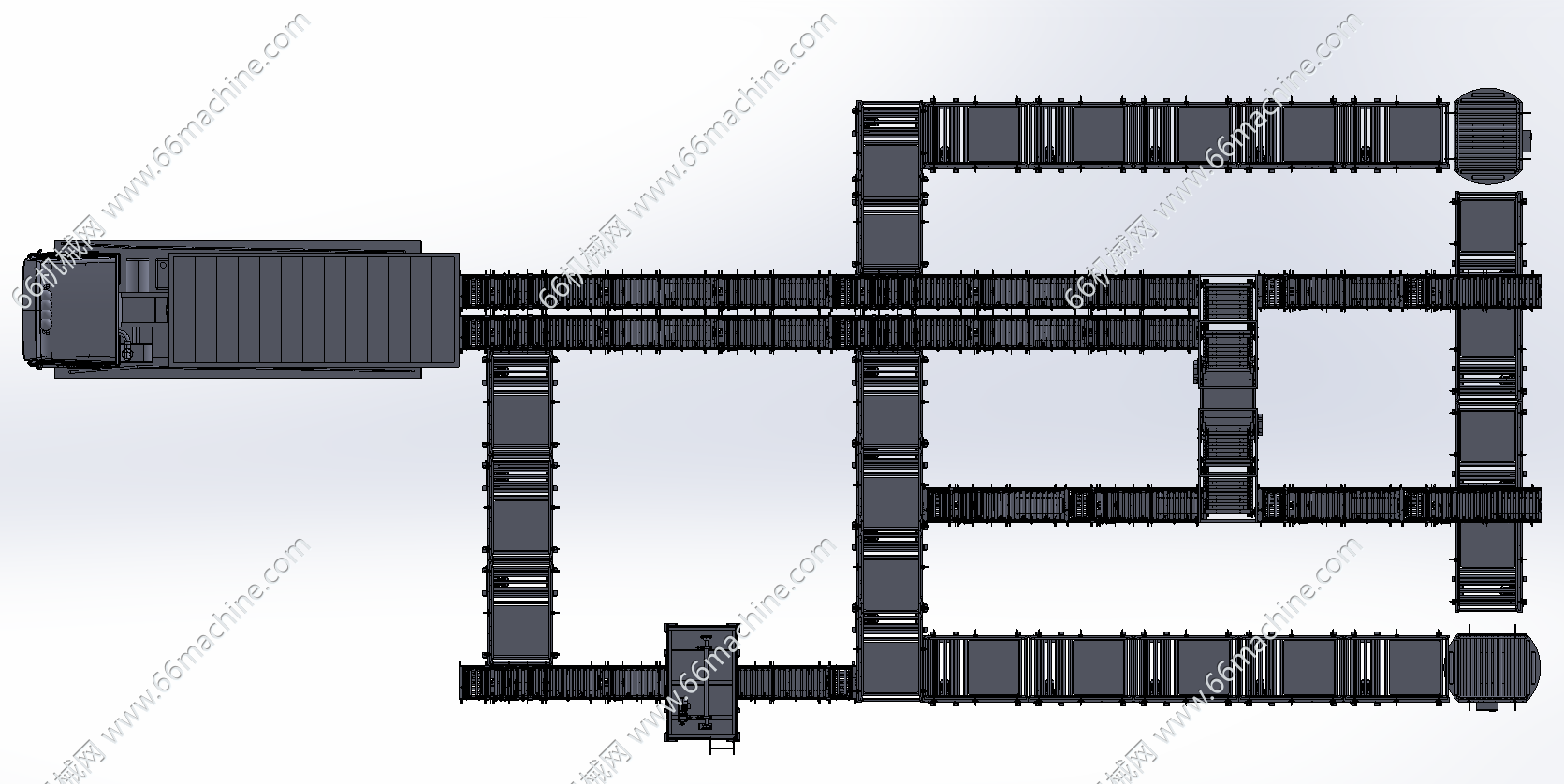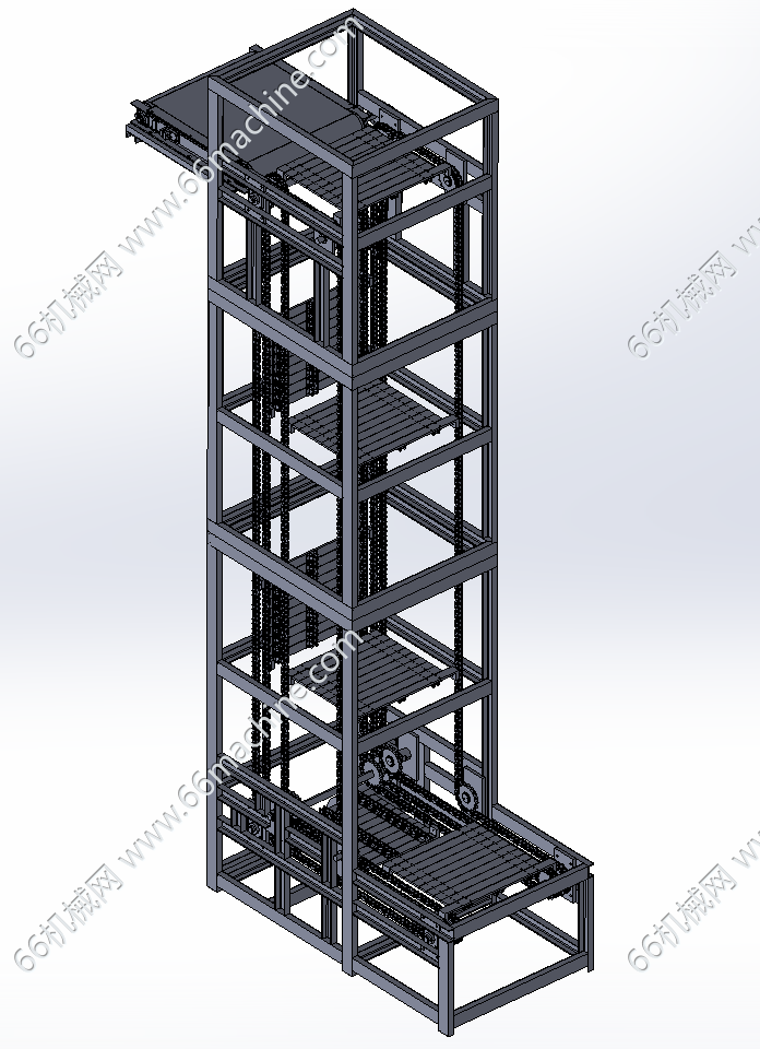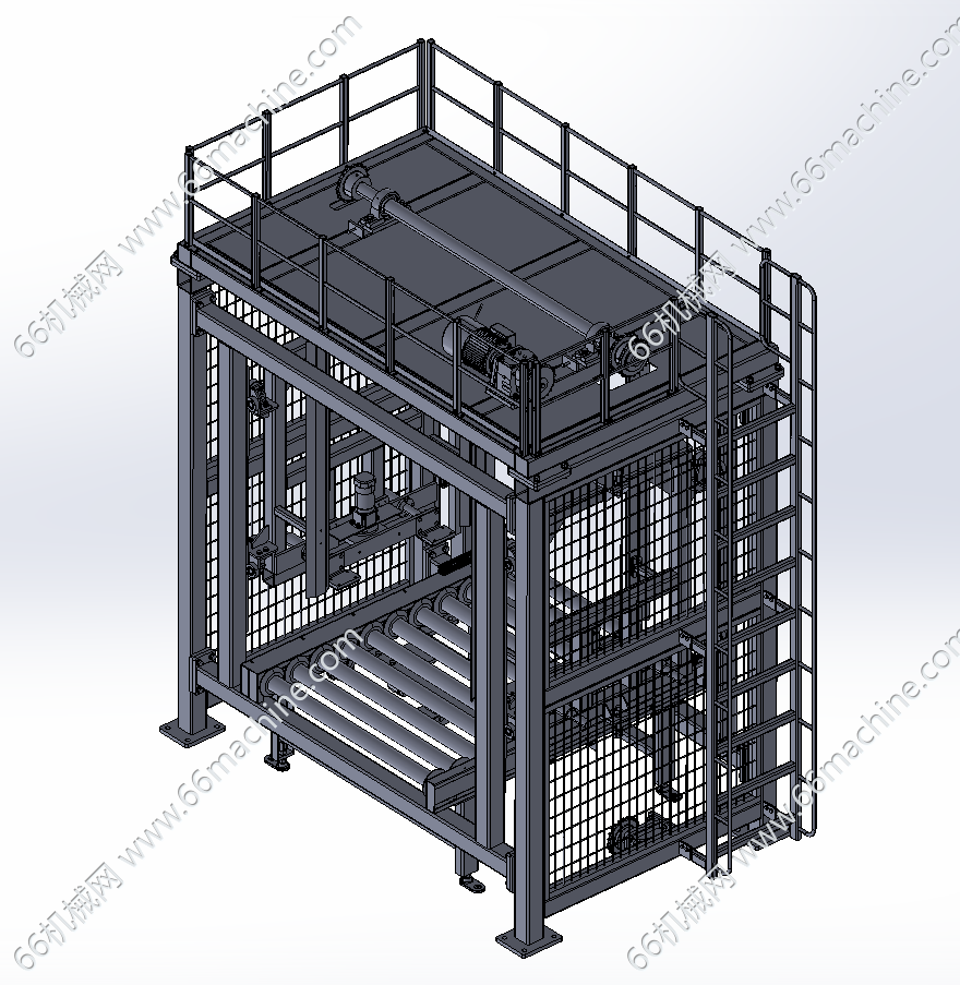 本模型为托盘提升机及输送滚筒线,主要由2台提升机、托盘拆码垛机、单/双层滚筒输送线、货车组成,滚筒线组成环形线,将托盘上的货物送至货车并由托盘拆码垛机回收空托盘,欢迎参考!