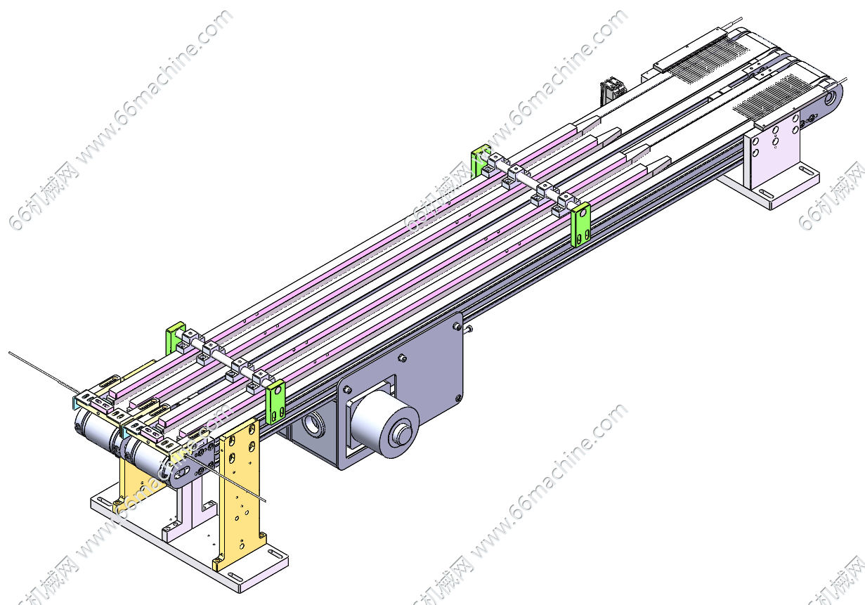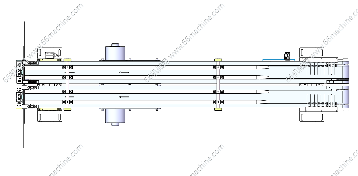 本模型为双皮带上料皮带线,运用连续或间歇运动来输送各种轻重不同的物品。广泛应用于电子、电器、机电、食品、加工机械等各行业的物件的组装、检测、调试、包装及运输等。线体输送根据工艺要求可调试:普通连续运行、节拍运行、变速运行等多种控制方式。