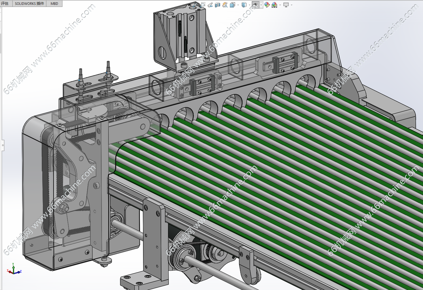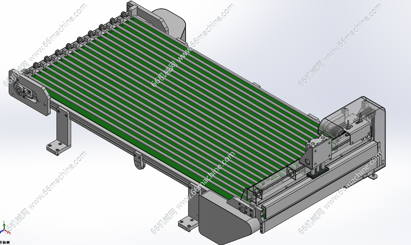 本模型为多列输送皮带机,也称为并行皮带输送机或多通道输送机,是一种采用多条(两列及以上)皮带并行排列,以同步或独立的方式输送物料的自动化设备。它的核心设计思想是在有限的宽度方向上,实现物料的分离、并行处理与合流,从而大幅提高单位时间内的输送和处理效率。