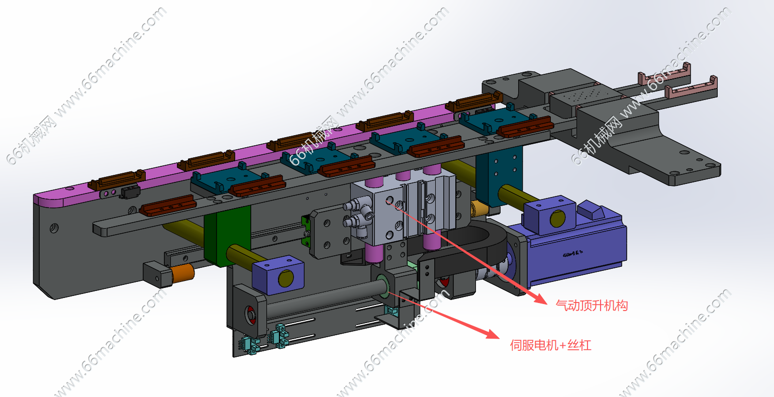 本模型为伺服步进机构,采用伺服电机+丝杠结构推动工件进行定距直线步进,其核心特点是每次动作只推进一个固定步距。同时设有气动顶升机构,实现步进同时进行升降,应用场景:用于生产线的连续逐个送料,欢迎参考!