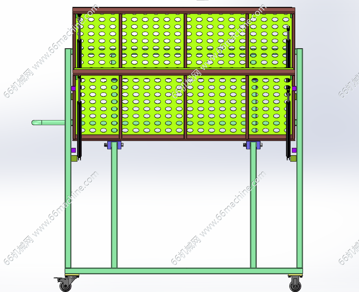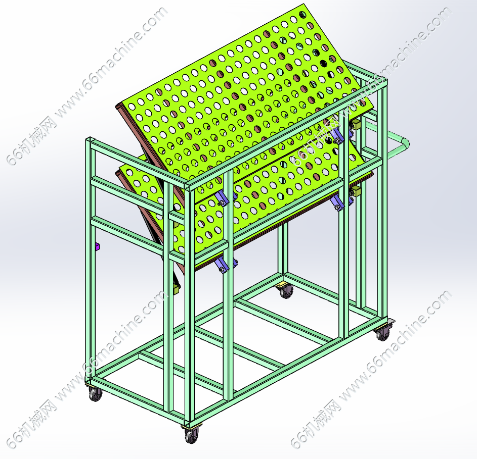 本模型为掀背式物料周转车(手推车),采用掀背式结构,这种设计使后部完全敞开,便于零件的快速取放。配备刹车脚轮,移动时轻便灵活,能够在光滑或不平的地面上平稳运行。