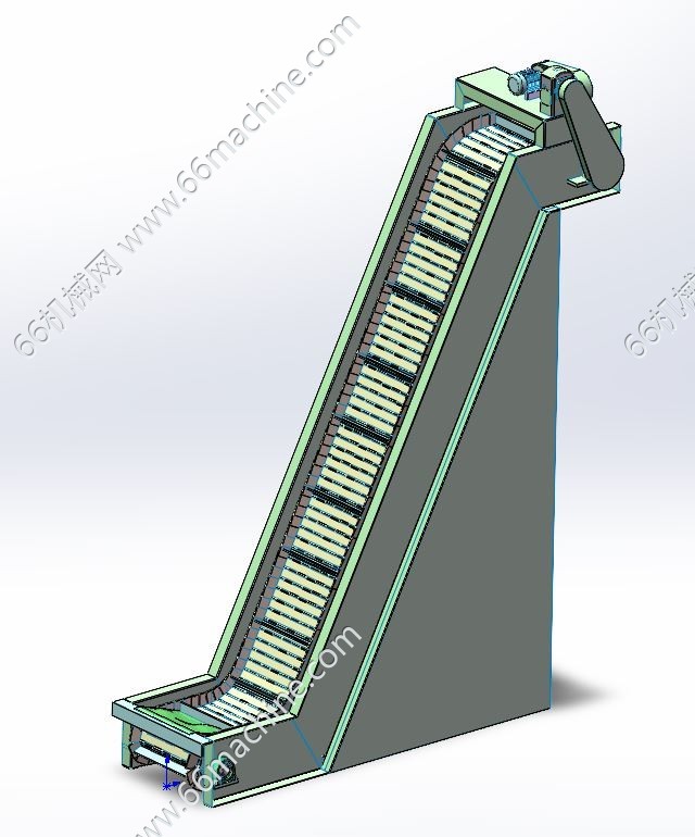 设计一种简易爬坡传送带,可将货物从地面运向高处,减少人工劳动量,提高货物的运输效率。采用solidworks2018建模,内附STEP文件,无参数,可制造,欢迎下载参考!