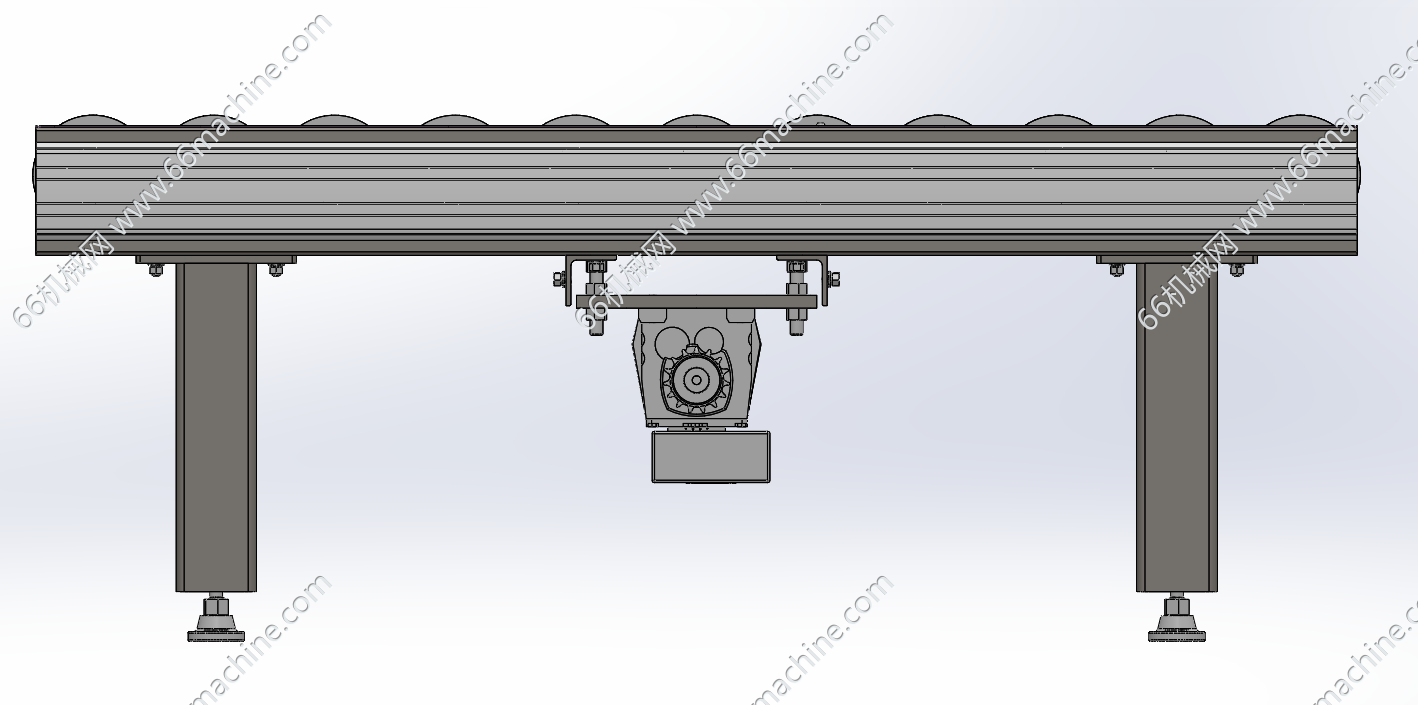 本模型为动力式辊道输送机,由铝型材机架、驱动系统和多根包胶辊筒组成,整体采用模块化设计,方便安装和维护,常用于车间生产线的物料流转、仓库的分拣接驳环节。