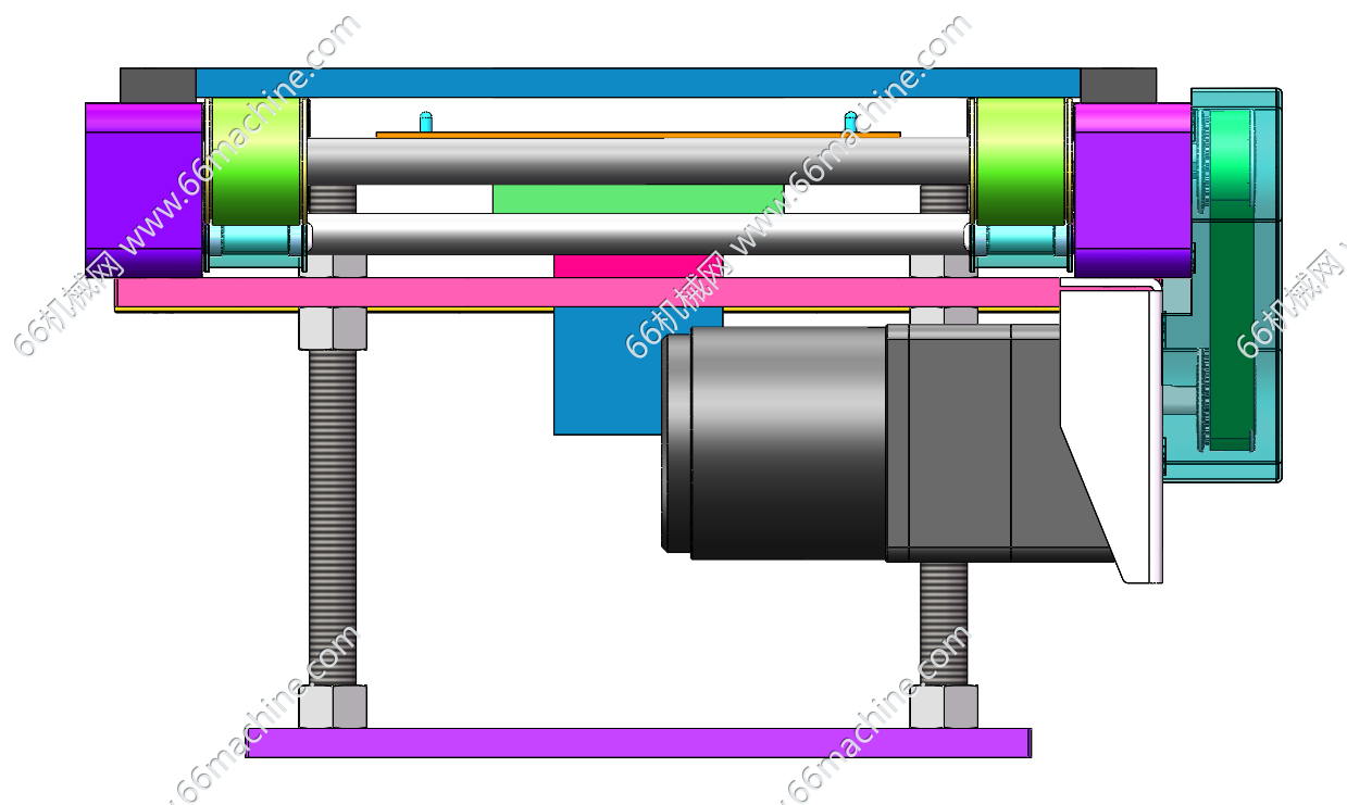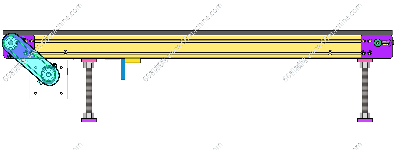 本模型为高度可调的双列皮带输送线,采用电机驱动实现载具的平稳输送,通过底部螺杆手动调整整体高度,广泛应用于电子制造、包装等自动化生产场景中。