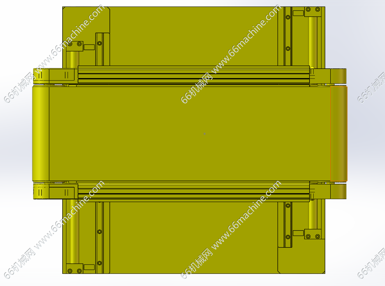 本模型为基于无杆气缸的横移皮带线,主要由机架、皮带输送线及无杆气缸构成,无杆气缸是一种没有活塞杆的气缸,利用活塞直接或间接带动负载做直线往复运动,相比传统有杆气缸,它的最大优势是节省安装空间。