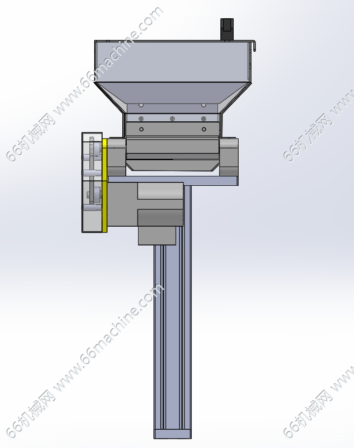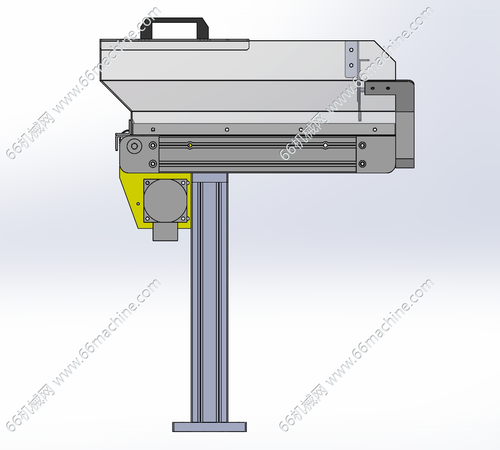本模型为料仓式皮带送料机,由防护料仓、皮带线与可调支撑立柱组成,可实现小型零件的连续、稳定供料,常作为振动盘的供料模块,适配五金、电子元件等小型工件的上料场景。