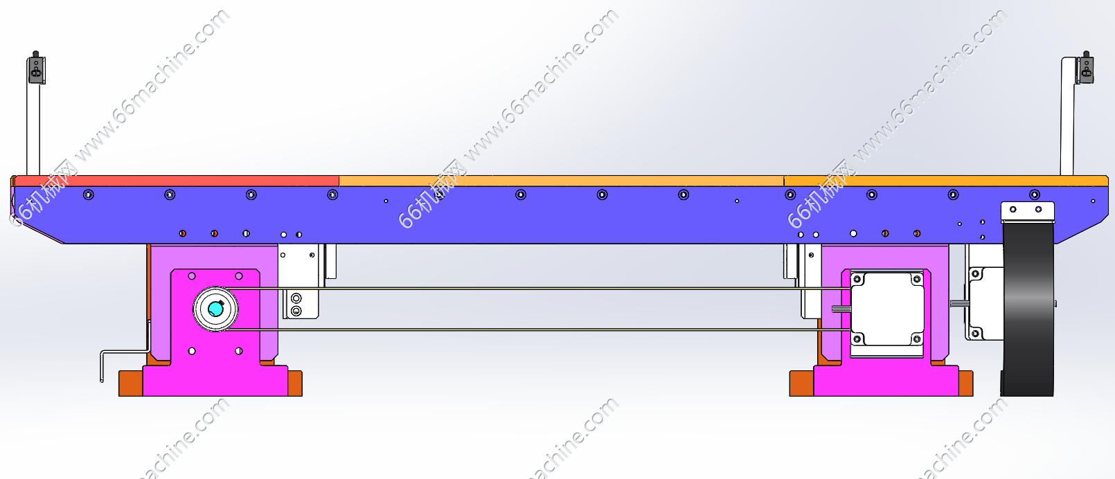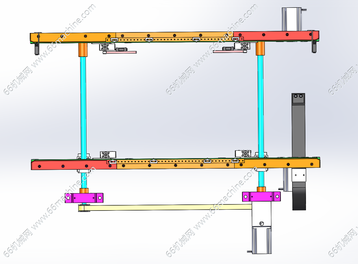 本模型为间距可调式双轨道皮带输送机,适合输送薄壁片装物料,且两皮带之间的宽度可以调节,兼容不同大小的物料输送。整体结构稳固便于安装,该图纸已经批量生产了,结构都已经验证,下载可以直接生产。