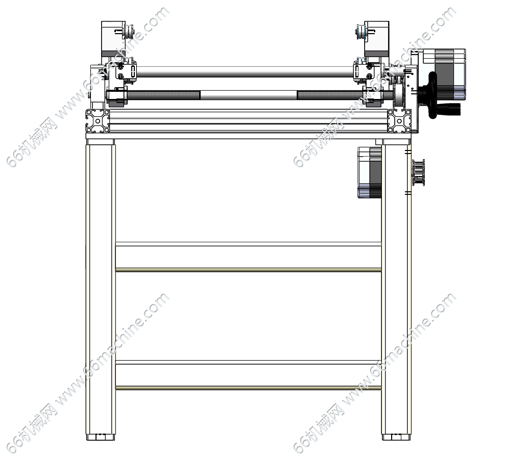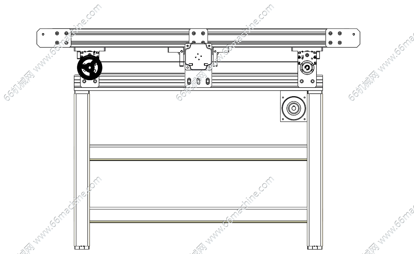 本模型为手动宽度可调皮带线(间距可调式输送机),采用手柄丝杠模组调整皮带线的间距(中心不变,二侧同时移动)。根据产品的宽度不同调整轨道之间的宽度,让产品能顺利通过,兼容性很强,适用载盘、PCB板等的运输。