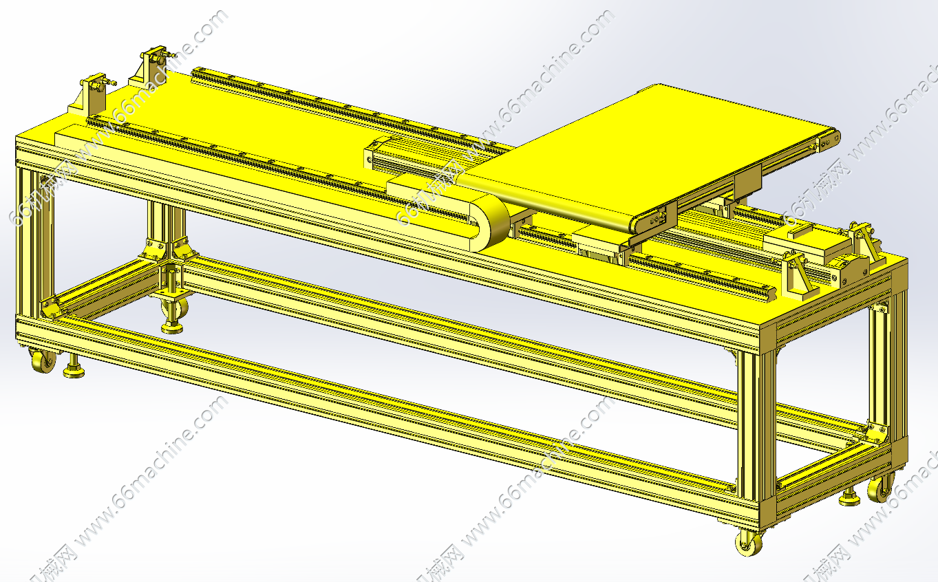 本模型为伺服横移式皮带输送机,是一种集成水平输送与横向位移功能的自动化输送设备,通过在传统皮带输送机基础上加装伺服横移驱动系统,实现皮带线本体在导轨上的左右移动,广泛应用于仓储分拣、物料码垛、生产线物料转运等场景。