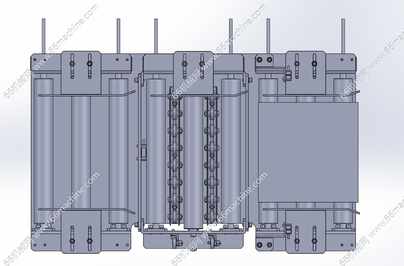 本模型为箱体高度分类滚筒输送线,将包裹按照箱子的高度尺寸进行分类,低包裹可通过窗口,继续传送,高包裹被窗口阻挡,气动倾斜滚筒将其从侧面流出。