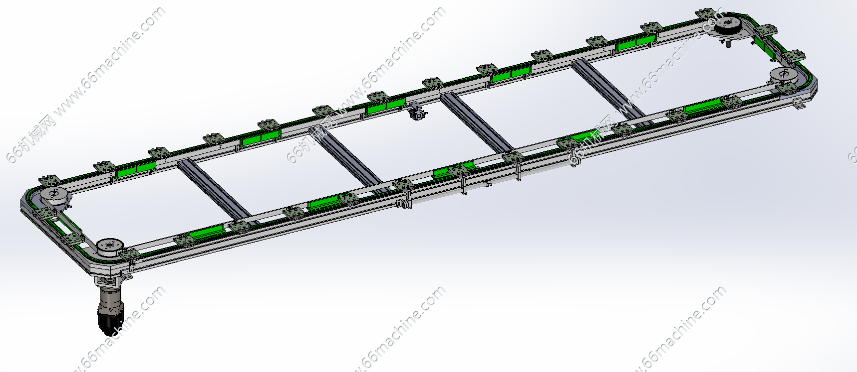 本模型为30工位矩形同步带环形导轨,采用伺服电机驱动带轮旋转进而带动滑座旋转,采用V25导轨,圆弧直径300mm,该环形导轨结构简洁,重复定位精度高,x-t通用格式,欢迎下载参考!