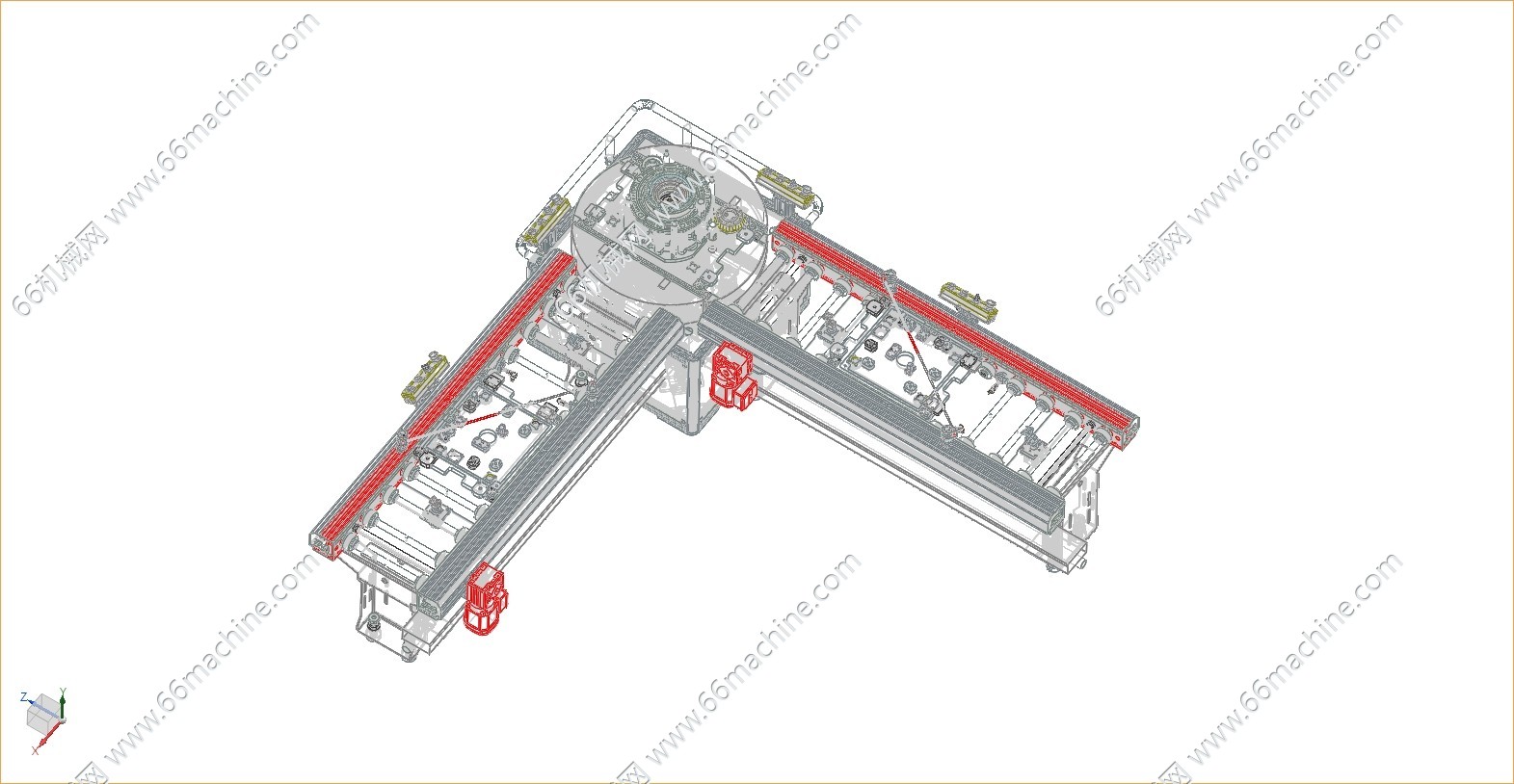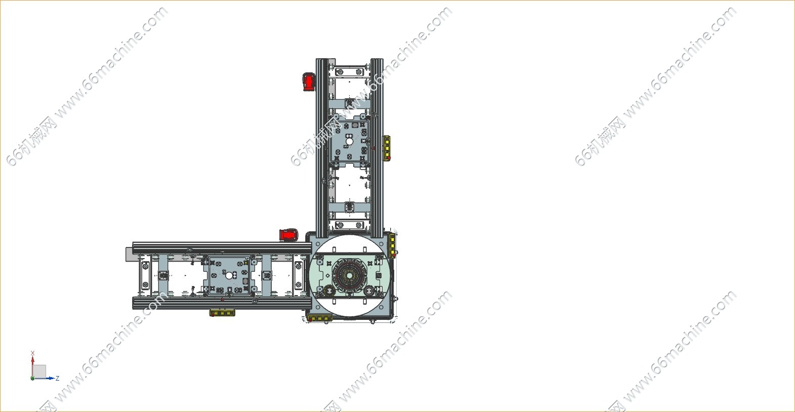 该图纸为90度转角输送线体,内包含线体转台及输送线结构,该机构可靠好用,已经广泛应用于各类装配线中,转台采用变频电机驱动,转速可调。输送采用电机驱动,欢迎下载。