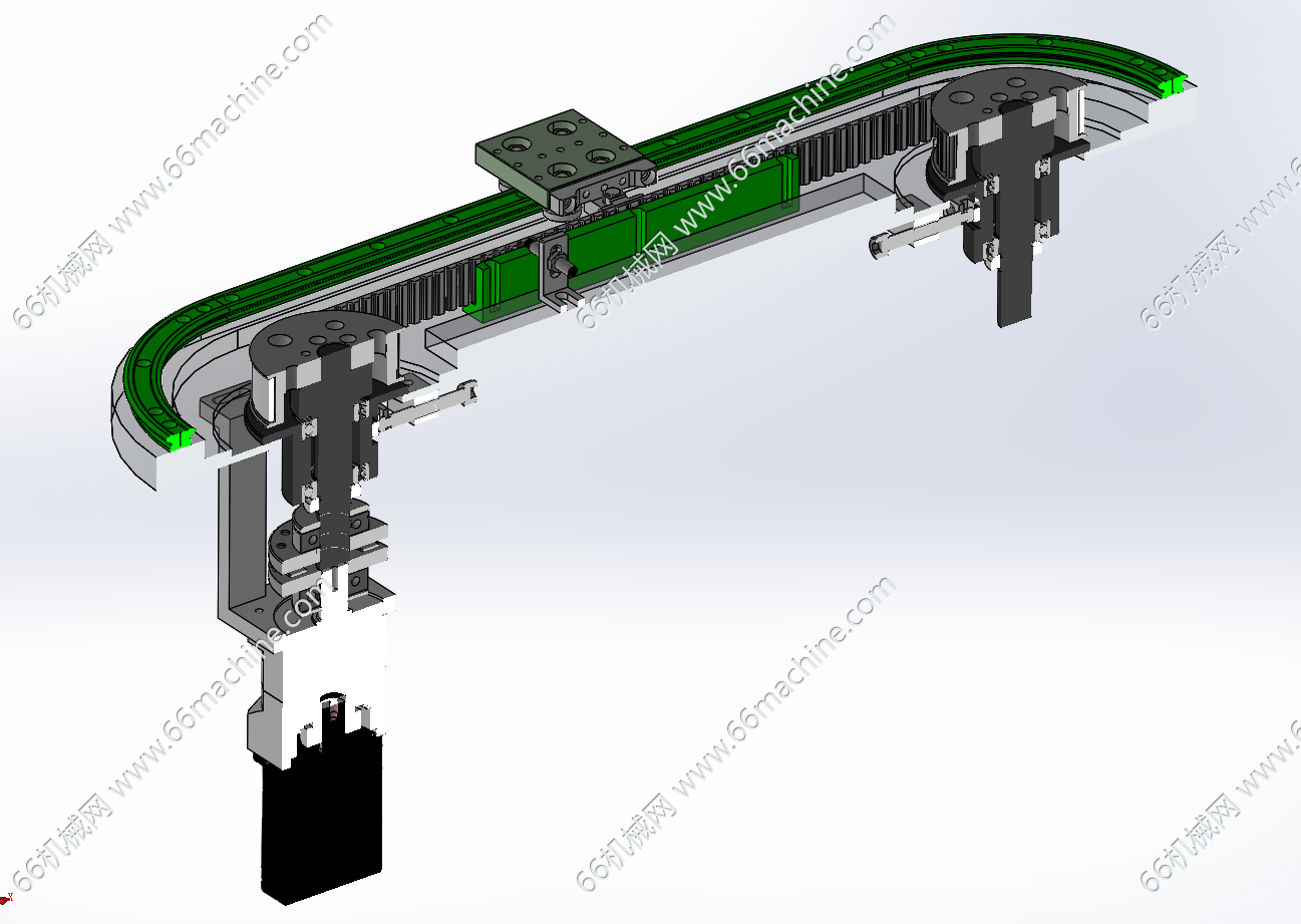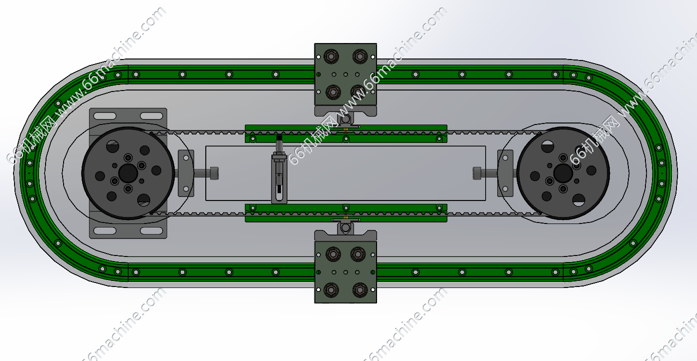 本模型为双工位椭圆同步带环形导轨,采用伺服电机驱动带轮旋转进而带动滑座旋转,采用V25导轨,圆弧直径255mm,该环形导轨结构简洁,重复定位精度高,欢迎下载参考!