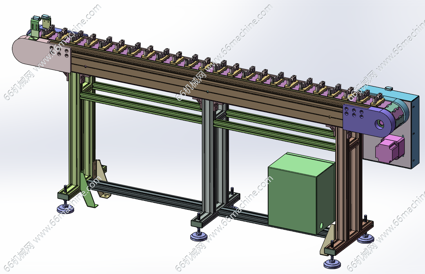 链板输送机是一种以标准链板为承载面,由马达减速机为动力传动的传送装置。由动力装置(电机)、传动轴、滚筒、张紧装置、链轮、链条、轴承、润滑剂、链板等构成。