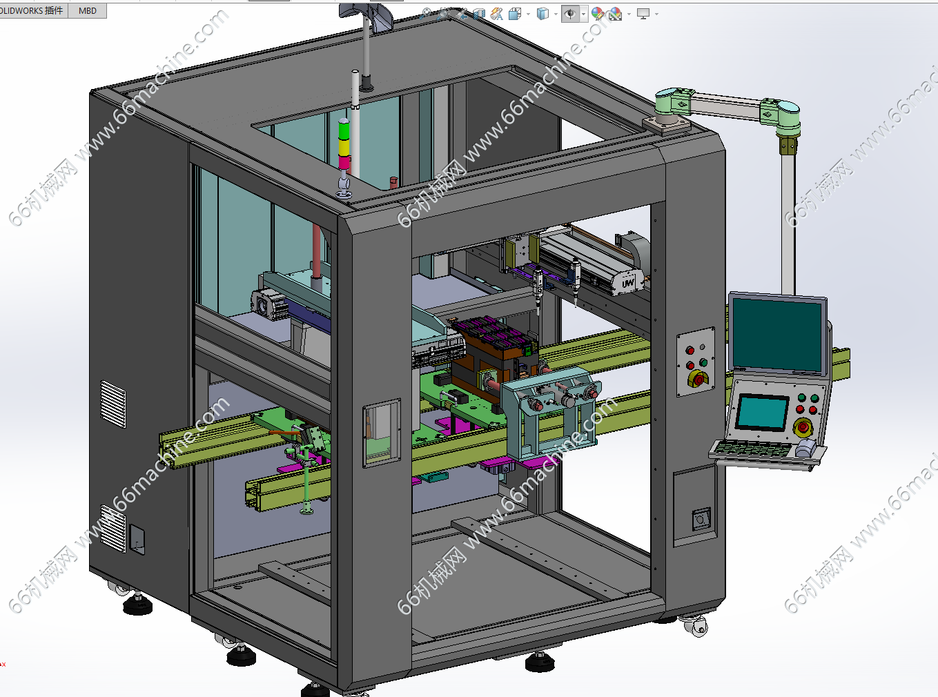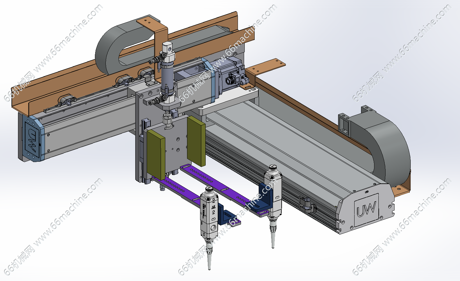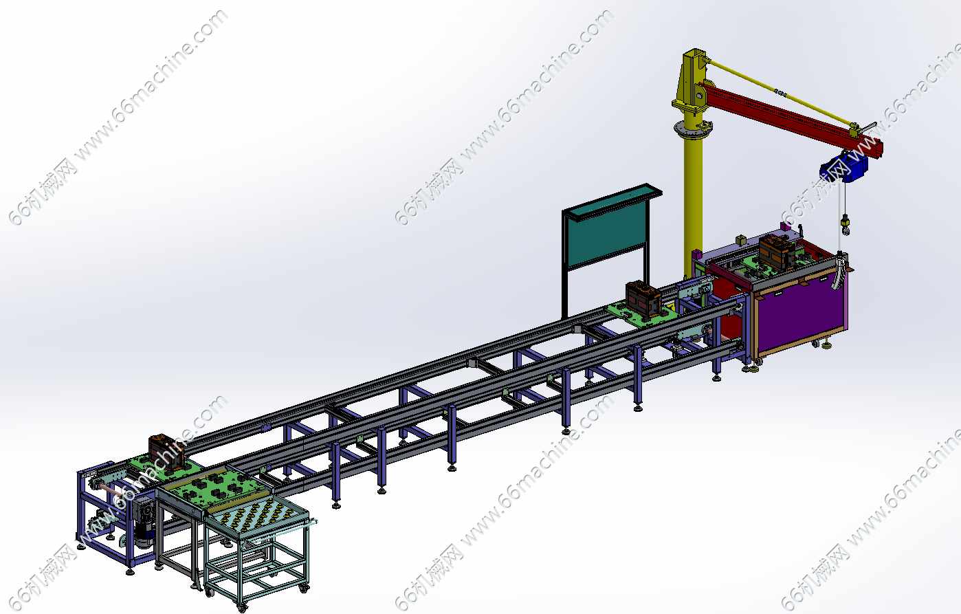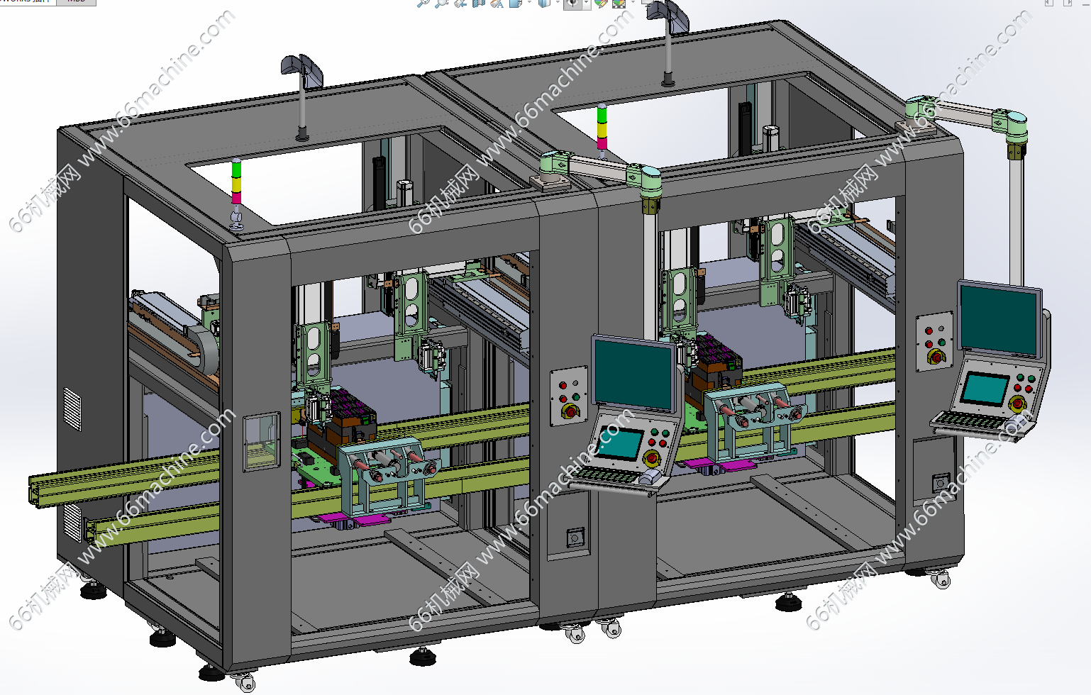 本模型为某企业电池模组点胶、折极耳、激光焊接及检测设备,主要由双层倍速链、点胶机、双台极耳折弯机、激光焊接机、导通性测试机、载具升降机、下料输送线等组成,用于电池模组的自动化点胶、折极耳、激光焊接及检测作业,仅供参考!