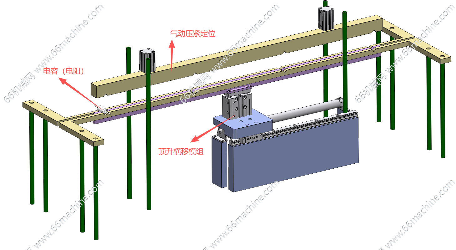 本模型为电容、电阻等元器件剪引脚设备,主要由机架、振动盘模组、压紧定位及搬运模组、夹取上下料机械手、气动剪刀等组成,用于电容、电阻等元器件自动上料-剪角-下料作业,欢迎参考!