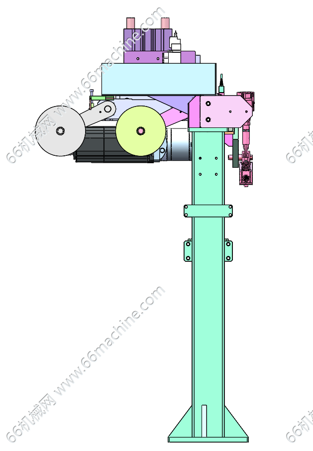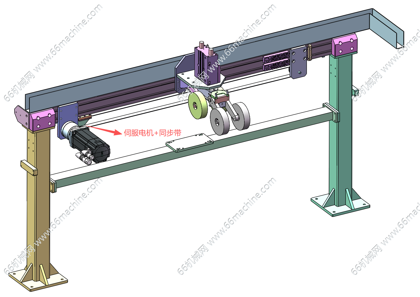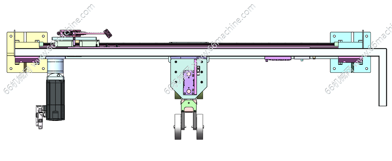 本模型为横移式喷胶(点胶)模组,在自动化装配线中,通常需要点胶工序,实现辅助装配,本模型采用伺服电机+同步带结构实现横移,配备点胶头(喷胶头)进行涂胶作业!