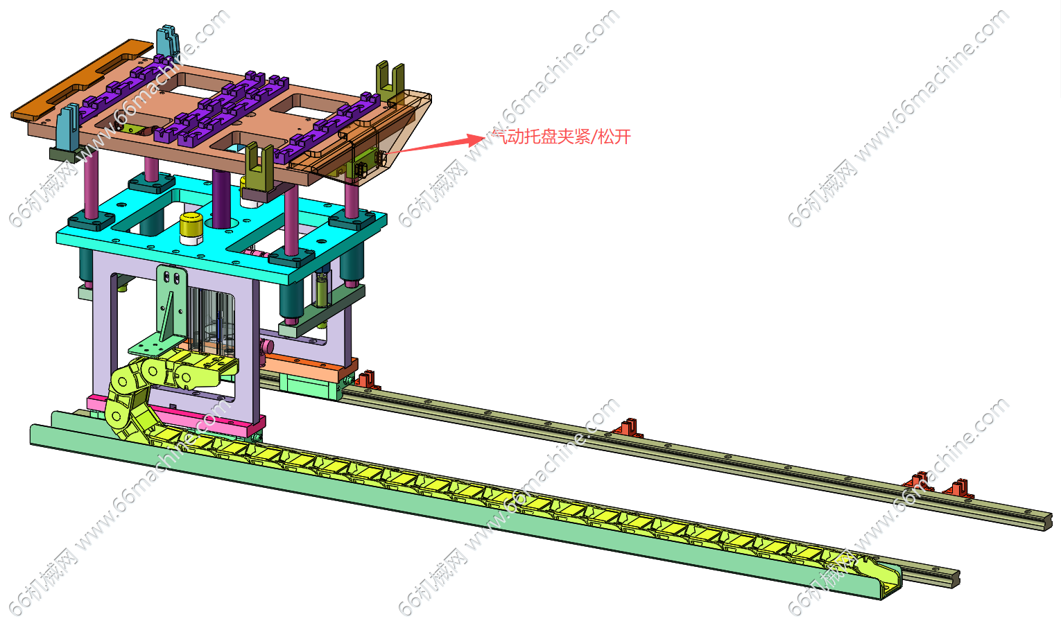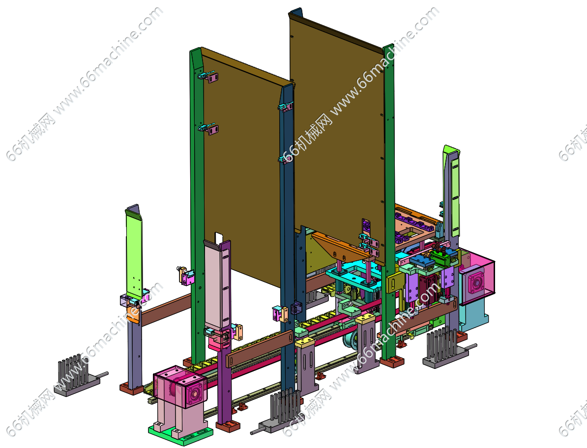 本模型为托盘上下料机构,主要由同步带输送模组、直线导轨升降移动模组、上空盘机构、成品盘机构等组成,主要用于将满载产品的托盘取料后的空托盘进行堆叠作业,欢迎下载参考!