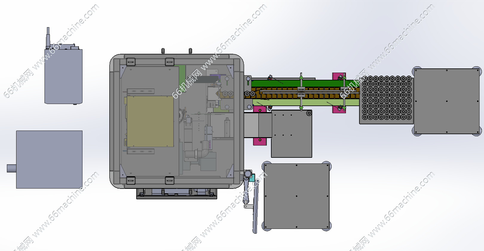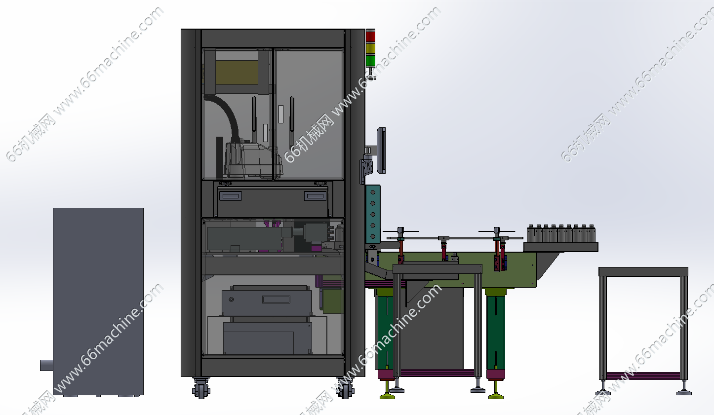 本设备为小瓶护肤品扫码机(自动上下料),主要由取/放料机械手、扫码组件、输送线等组成,机械手取小瓶进行扫码记录,扫码完成后放置在输送线,主要用于二维码的快速扫码并入库/出库,便于产品追溯,本模型建模精巧,sw2021版本,另含x-t格式,可供大家参考!