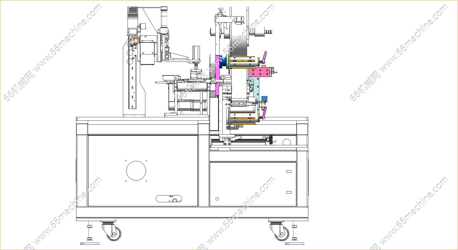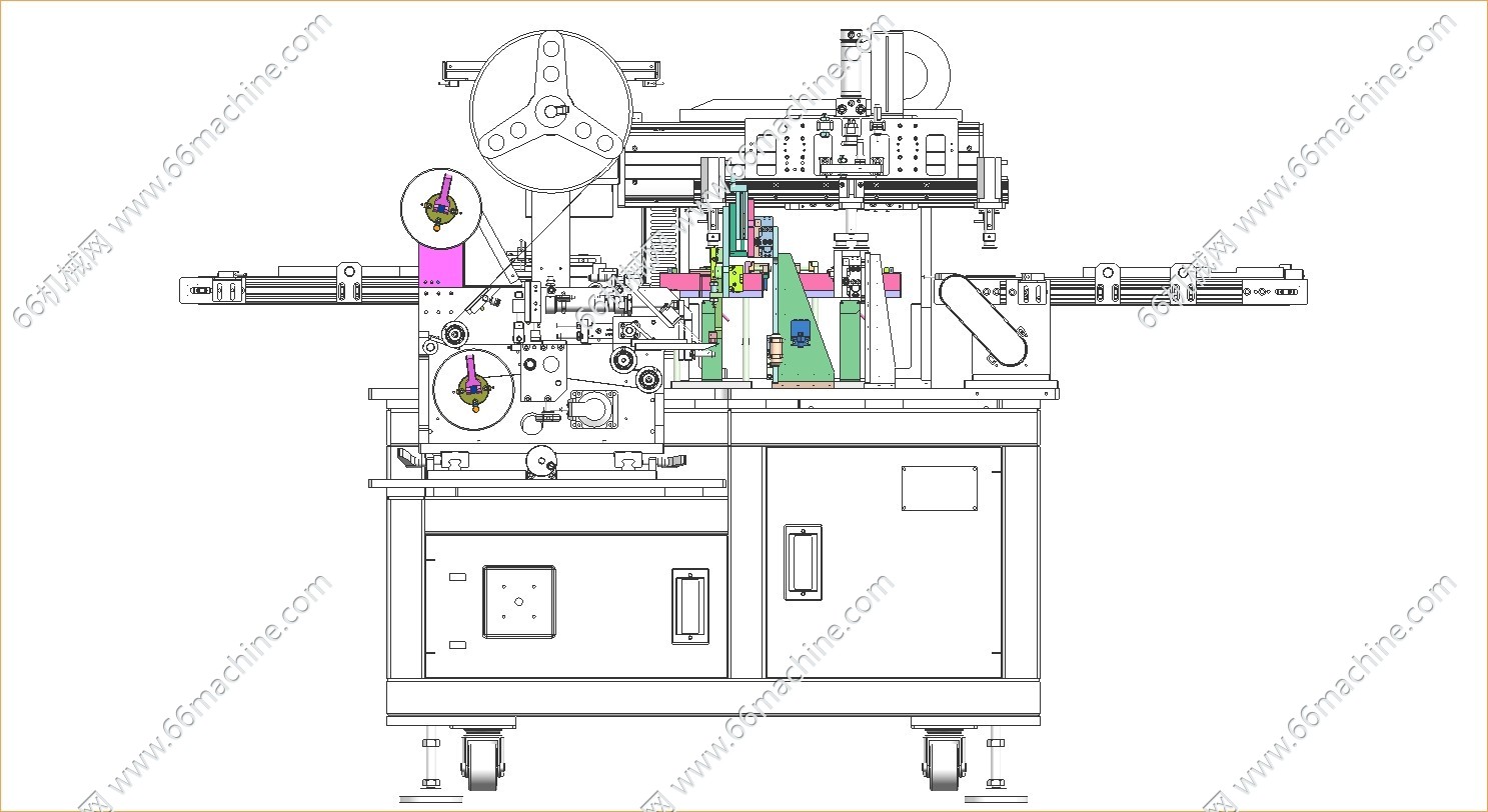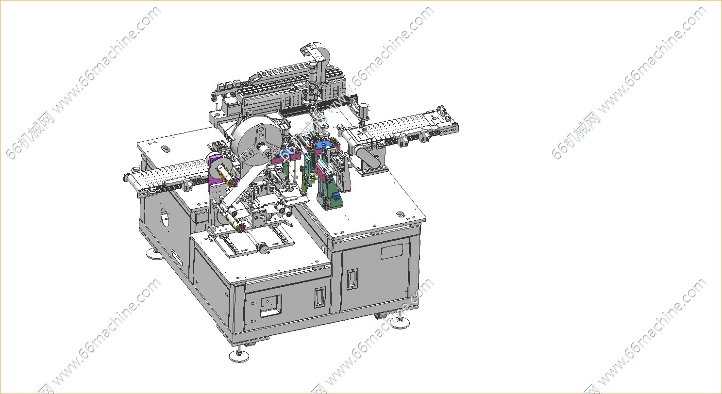 此设备用于手机电池生产线上的贴提拉手胶纸工序,自动上下料,贴胶,裹胶,双工位大产能设计,设计产能2000PCS/h,设备尺寸1100X1800X1900mm,各模块细节清楚,供方案参考使用。