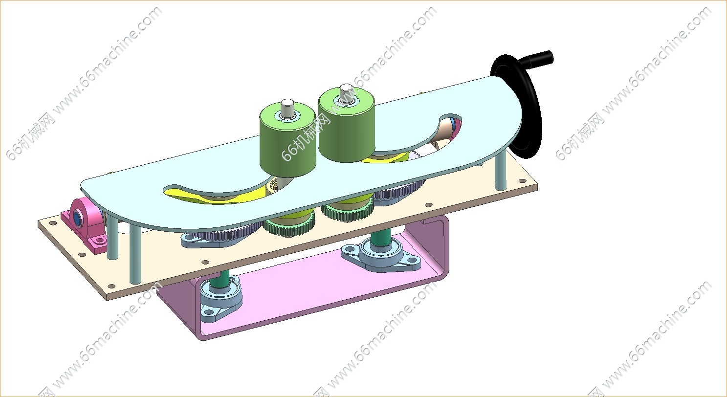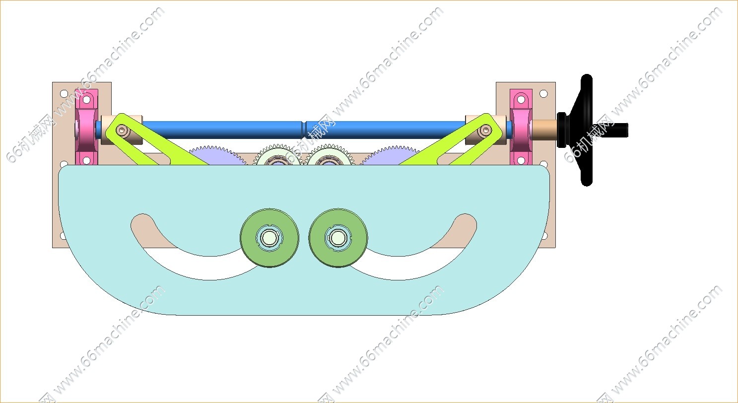 扇形同步开合机构,结构设计的亮点为使用一根正方向丝杆,通过齿轮和连杆的组合,通过拨动手轮实现橡胶轮的开合,图纸X-T格式,欢迎各位感兴趣的下载学习。